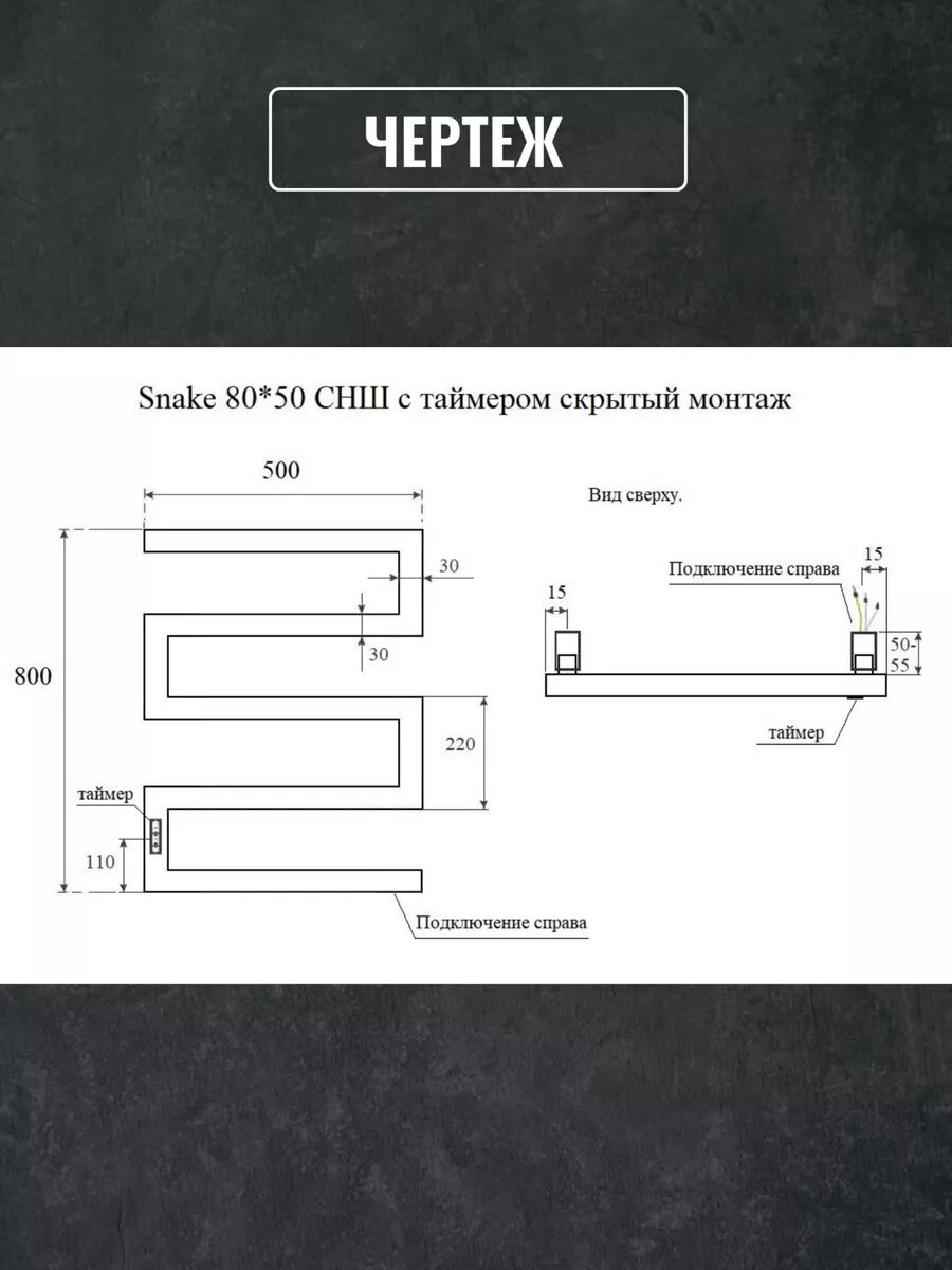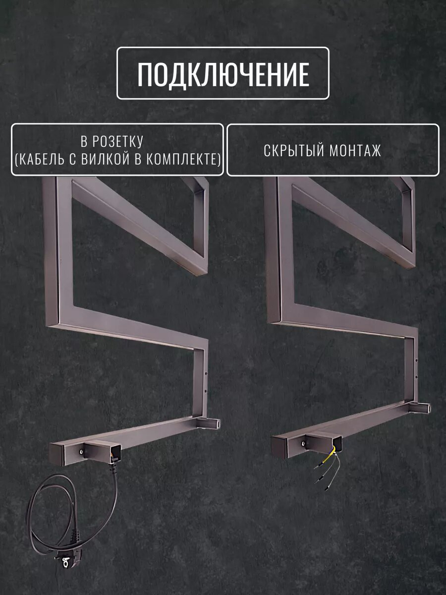 Полотенцесушитель электрический Графит профильный 800х500 мм Snake. Кабель черный с вилкой 90 см интересное: