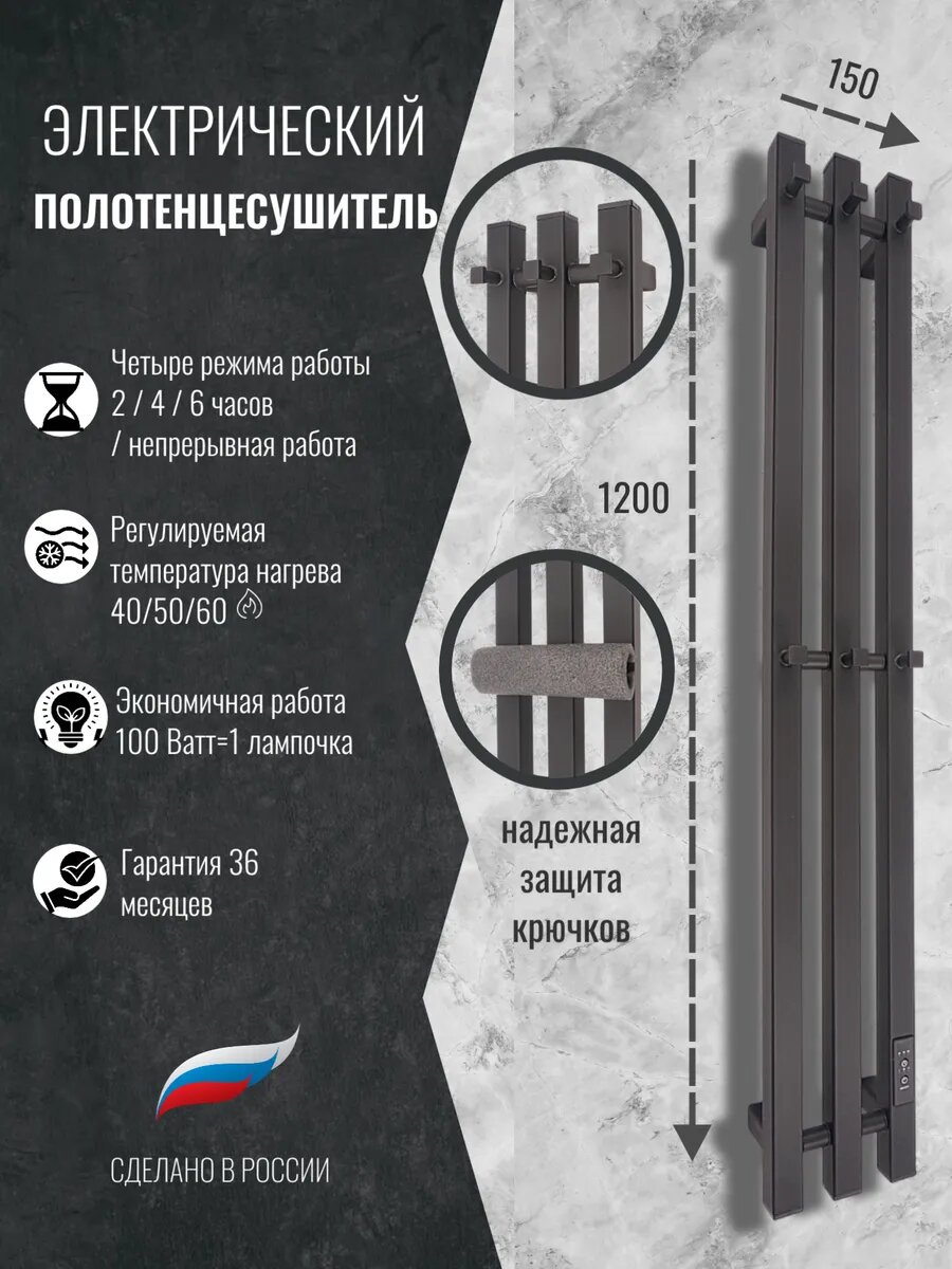 Полотенцесушитель электрический Маргроид 120x12 черный матовый интересное: