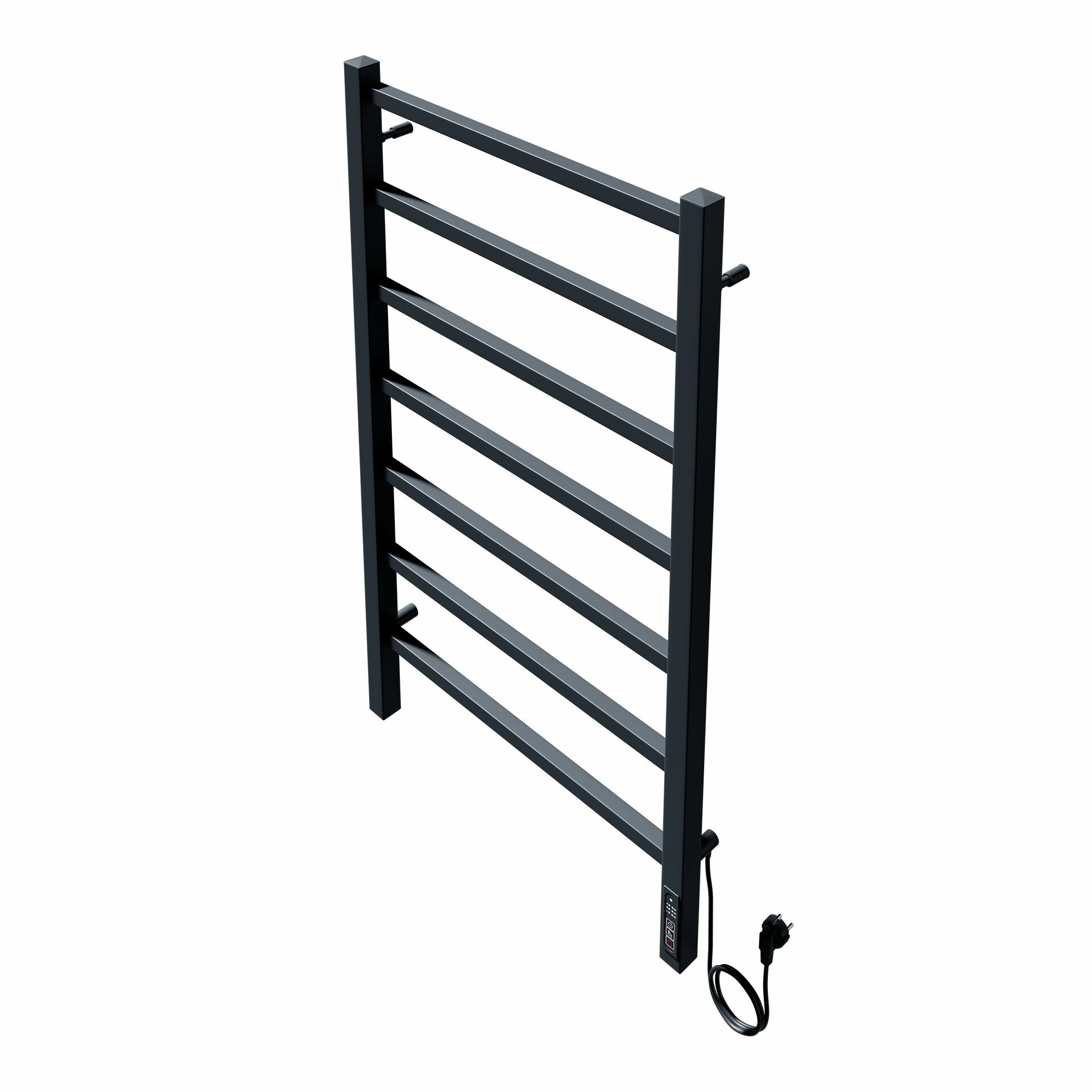 Полотенцесушитель электрический черный EL-TERM (Эл-Терм) рейн 500х700 мм, гарантия 2 года/ Электрический полотенцесушитель с терморегулятором
