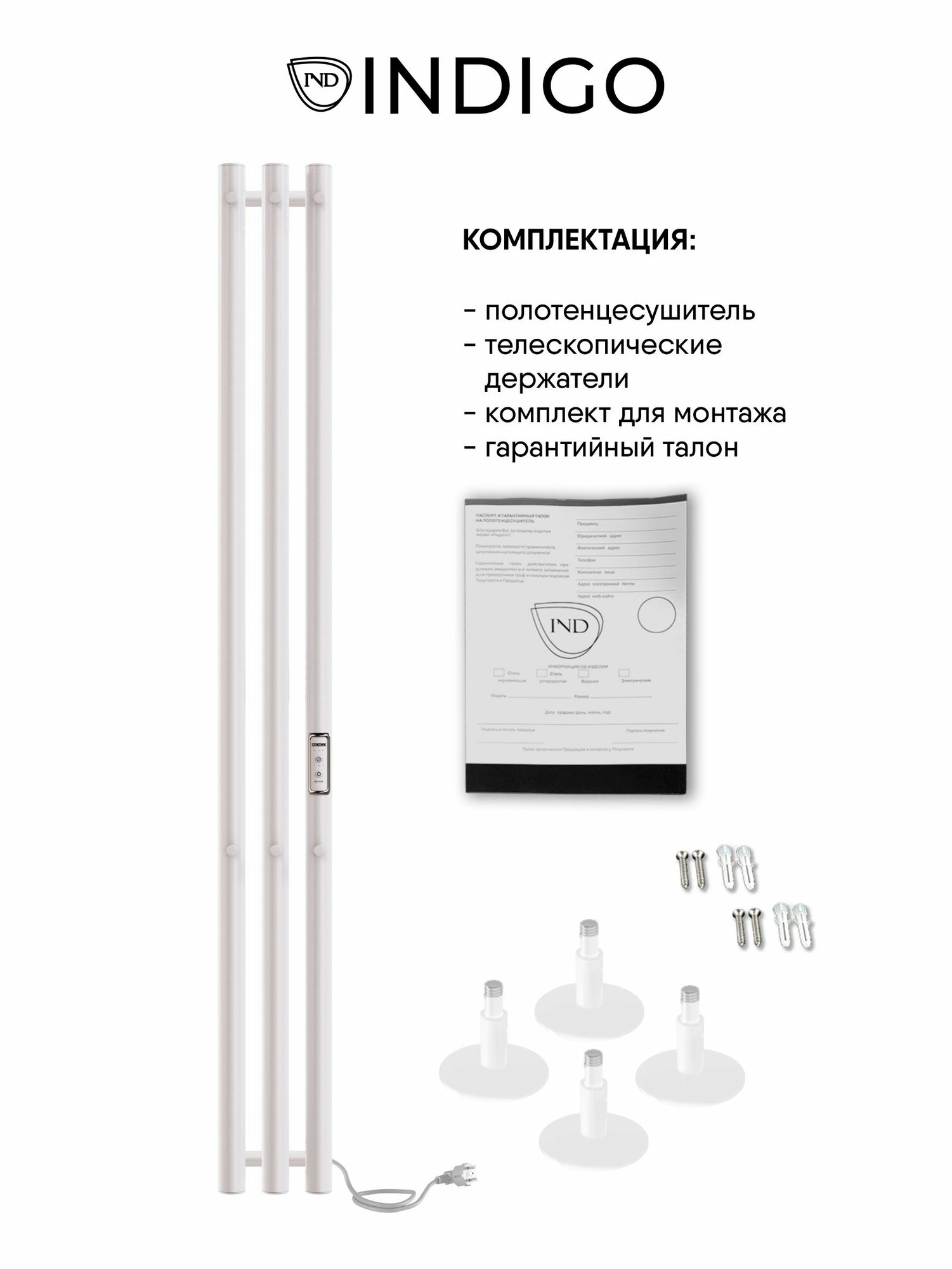 Полотенцесушитель электрический узкий INDIGO 120/18, терморегулятор, труба вертикальная интересное: