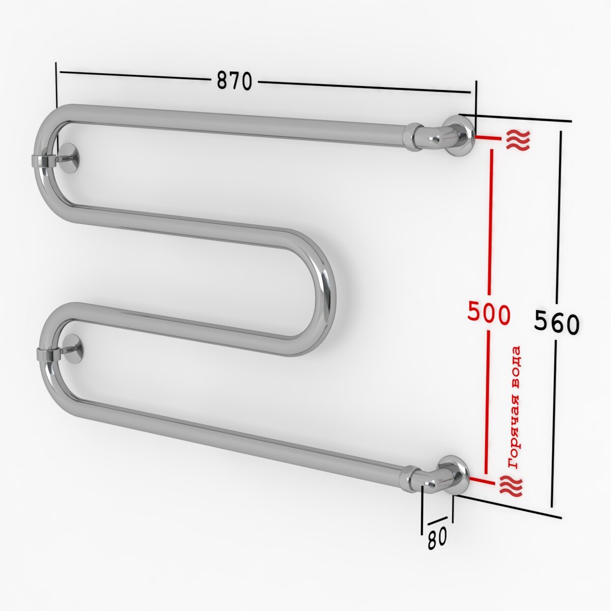 Полотенцесушитель Водяной Onix, модель Hit Turn Chrome Left 500x800, М-образный, Хром, полный комплект, с защитой от электрокоррозии