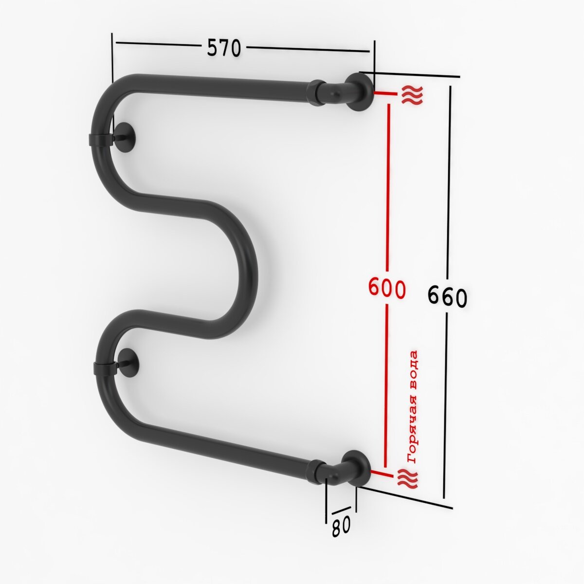 Полотенцесушитель Водяной Onix, модель Hit Turn Black Left 600x800, М-образный, Черный матовый, полный комплект, с защитой от электрокоррозии
