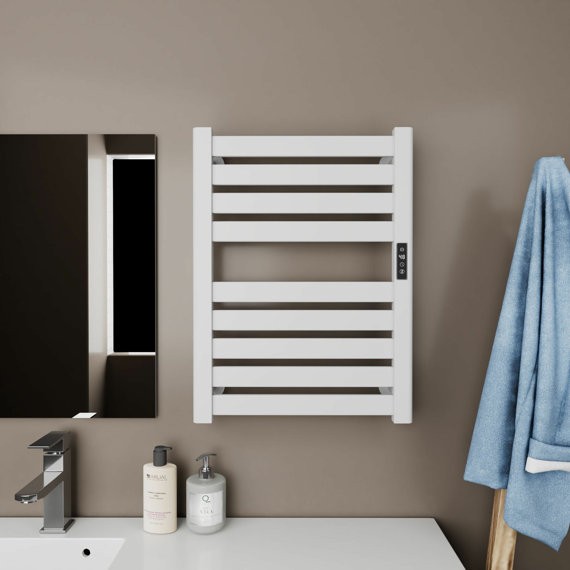 Полотенцесушитель дизайнерский электрический BAU Elite Elegant White 80х45, подключение справа, белый матовый