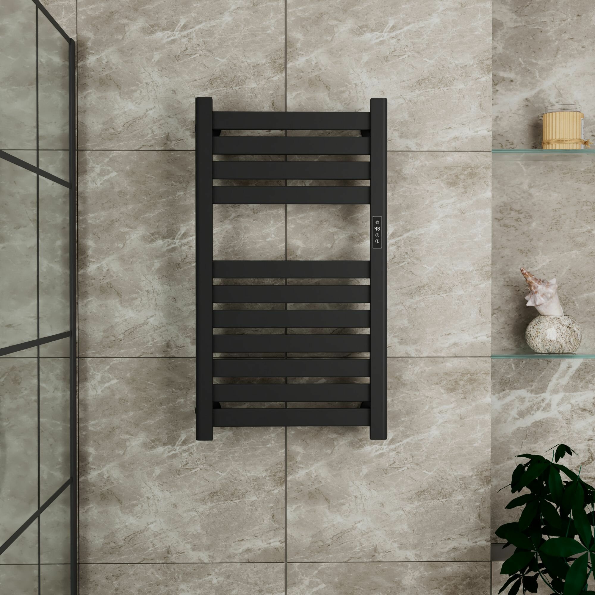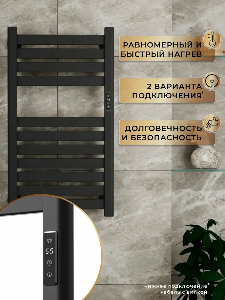 Полотенцесушитель дизайнерский электрический BAU Elite Elegant Black 60х45, подключение справа, черный матовый