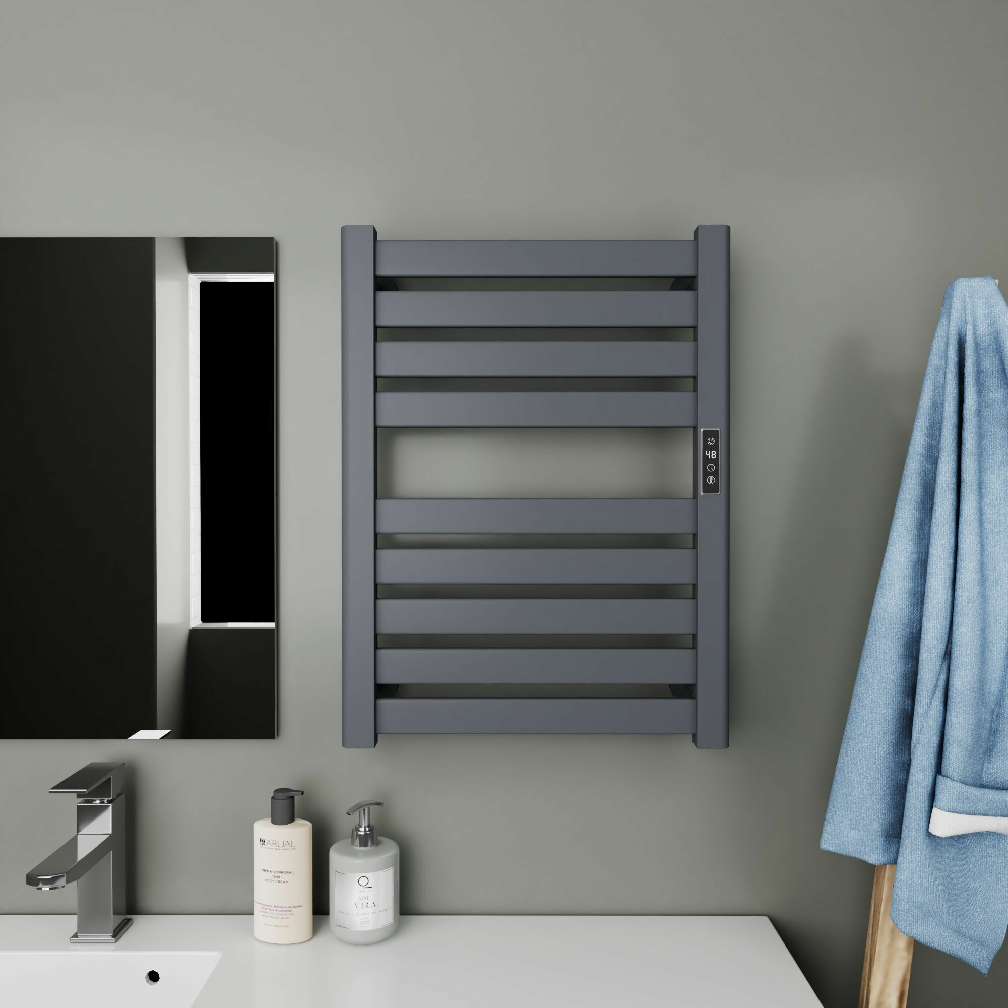Полотенцесушитель дизайнерский электрический BAU Elite Elegant Gun Grey 80х45, подключение справа, темно-серый металлик