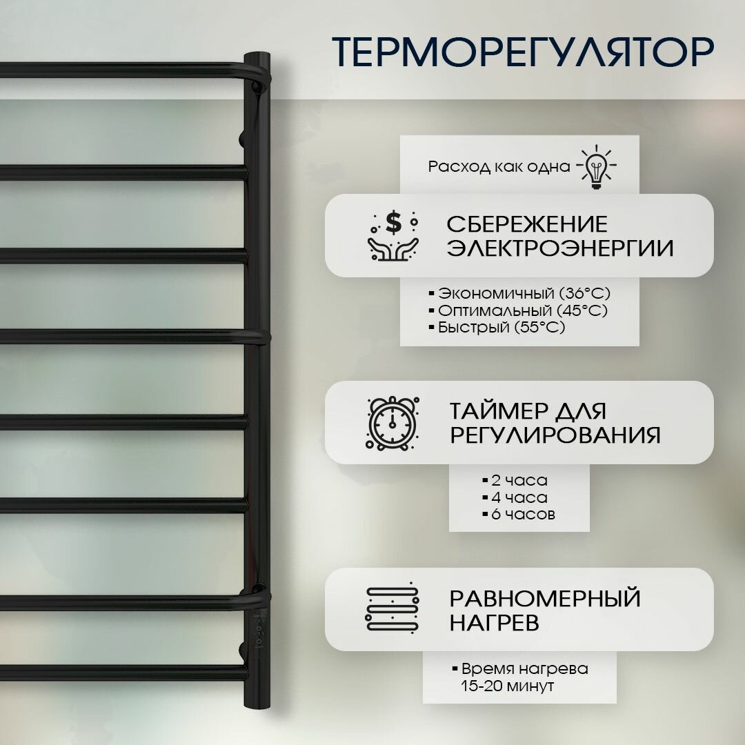 Полотенцесушитель Электрический Тругор Пэк сп 5 П 60х50 черный ВГП