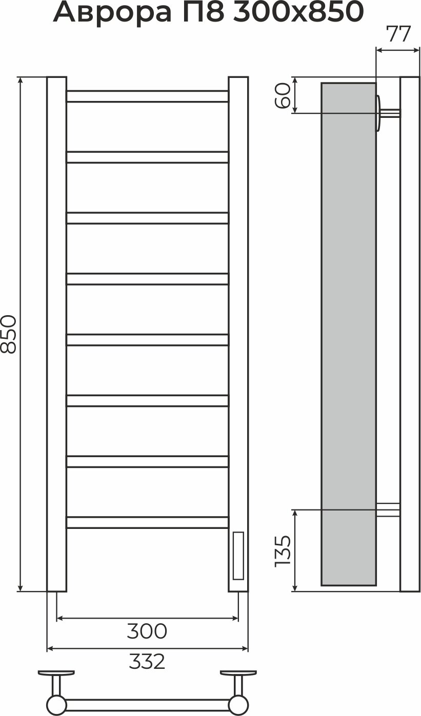Полотенцесушитель электрический TERMINUS (Терминус) Аврора П8 300х850 мм, нержавеющая сталь, гарантия 5 лет. интересное: