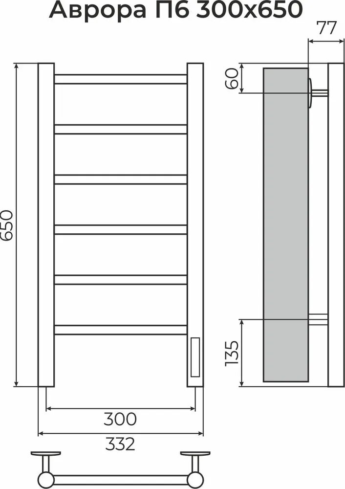 Купить Полотенцесушитель электрический Аврора П6 300мм 650мм Terminus терморегулятор