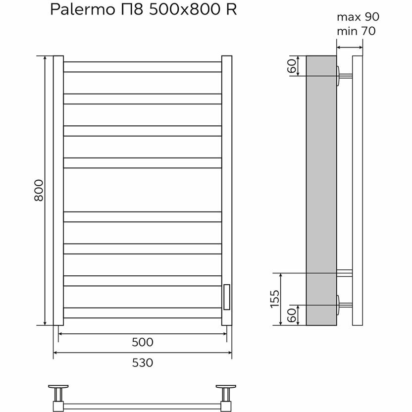 Полотенцесушитель Azario PALERMO 500/800 электрический черный R 8 пер. AZ83858B