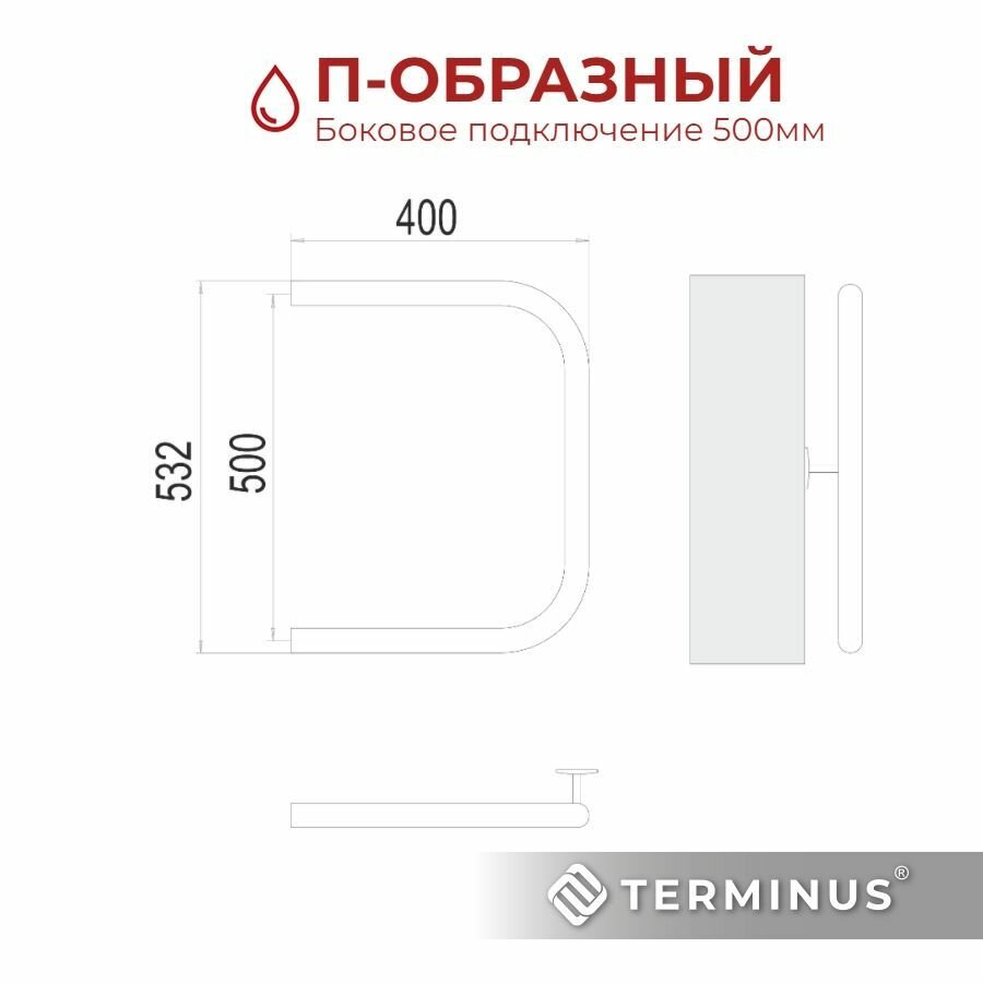 Полотенцесушитель водяной TERMINUS (Терминус) П-образный 500х500 мм, боковое подключение 500 мм, гарантия 10 ЛЕТ