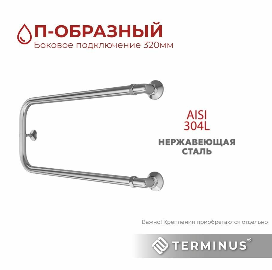 Полотенцесушитель водяной TERMINUS (Терминус) П-образный 320х500 мм, боковое подключение 320 мм, гарантия 10 ЛЕТ