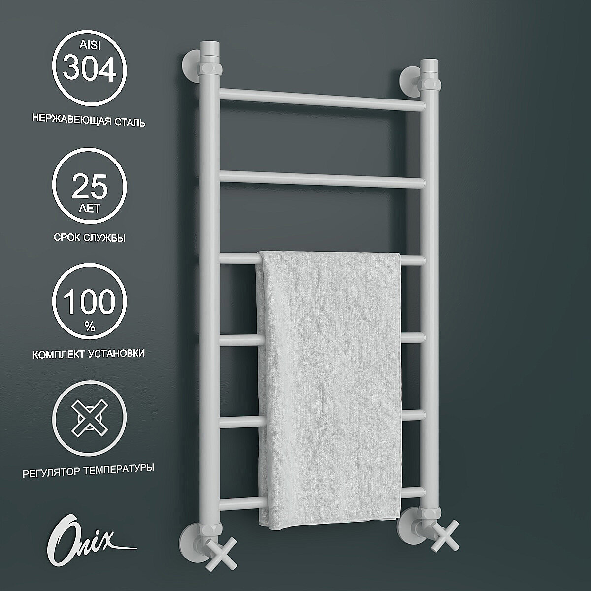 Полотенцесушитель Водяной Onix, модель Classic PRO White 500x800 Лесенка с нижним подключением, Белый матовый, полный комплект