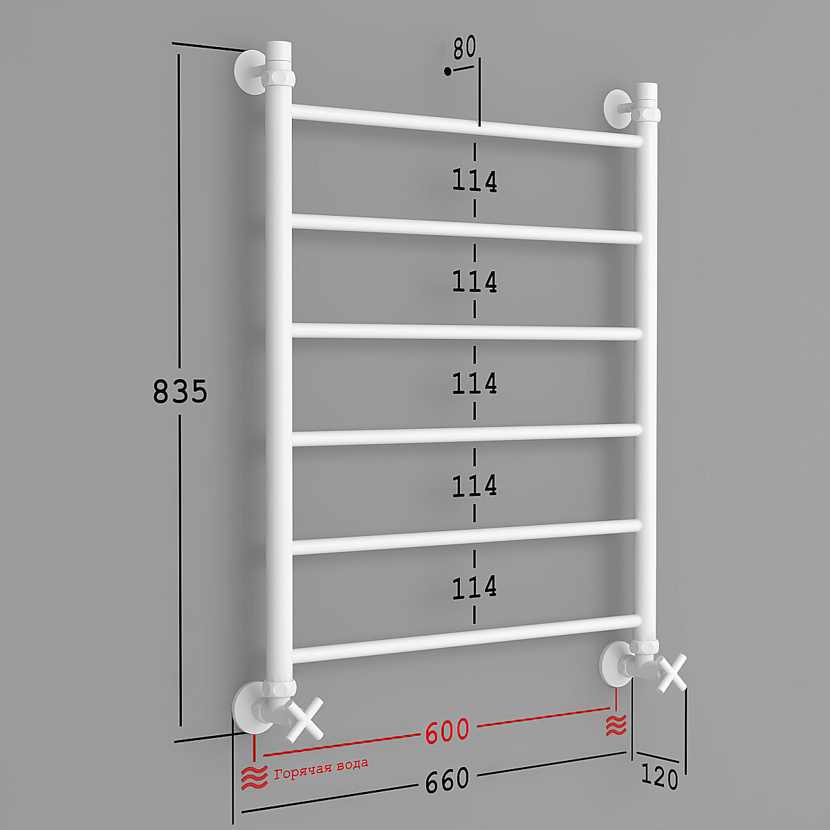 Купить Полотенцесушитель Водяной Onix, модель Classic PRO White 600x800 Лесенка с нижним подключением, Белый матовый, полный комплект