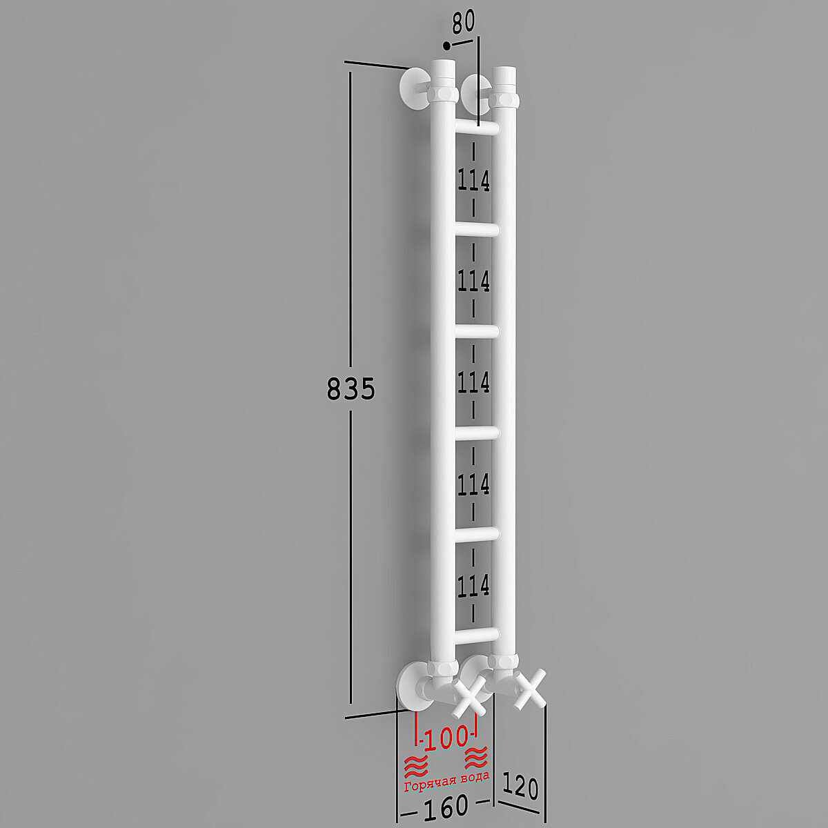 Купить Полотенцесушитель Водяной Onix, модель Classic PRO White 100x800 Лесенка с нижним подключением, Белый матовый, полный комплект