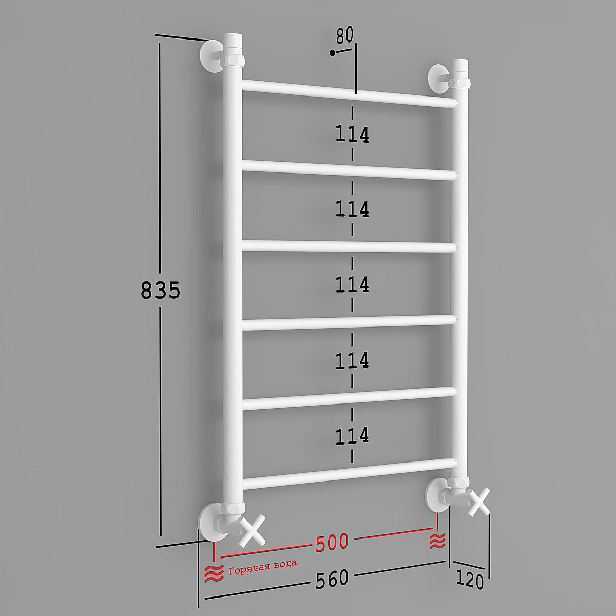 Купить Полотенцесушитель Водяной Onix, модель Classic PRO White 500x800 Лесенка с нижним подключением, Белый матовый, полный комплект