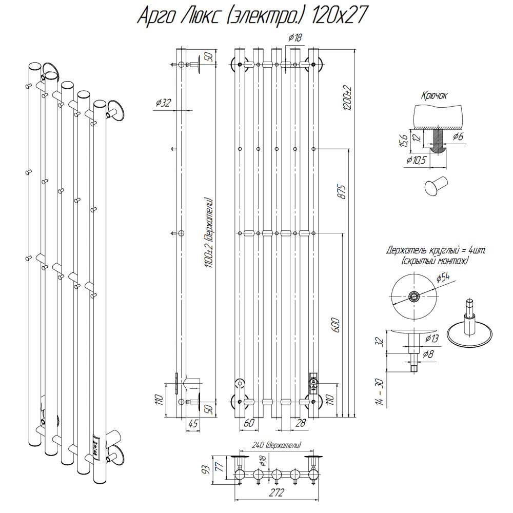 СохранитьПолотенцесушитель Арго Люкс (электро.) 120х27 (скр. монтаж, унив. подкл, Черный муар), Альтасан интересное: