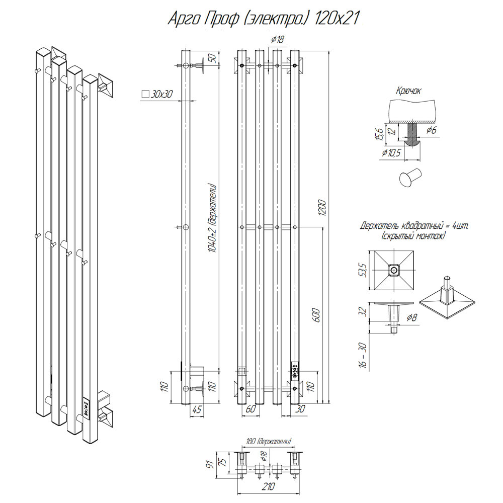 СохранитьПолотенцесушитель Арго Проф (электро.) 120х21 (скр. монтаж, унив. подкл, Белый матовый), Альтасан интересное: