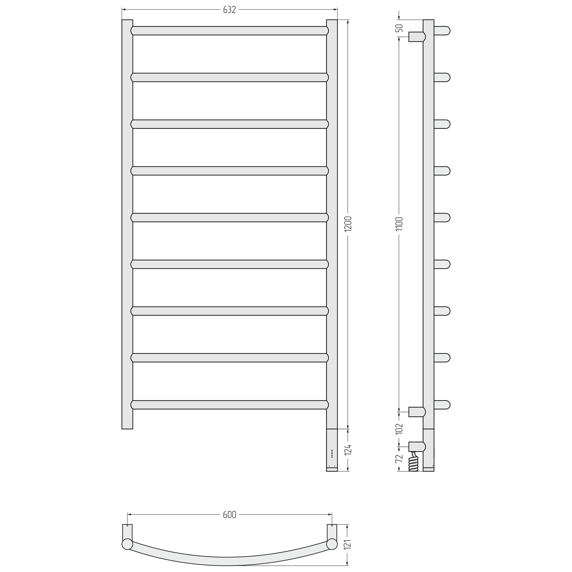Полотенцесушитель электрический Сунержа Галант 3.1 1200х500 МЭМ левый Без покрытия