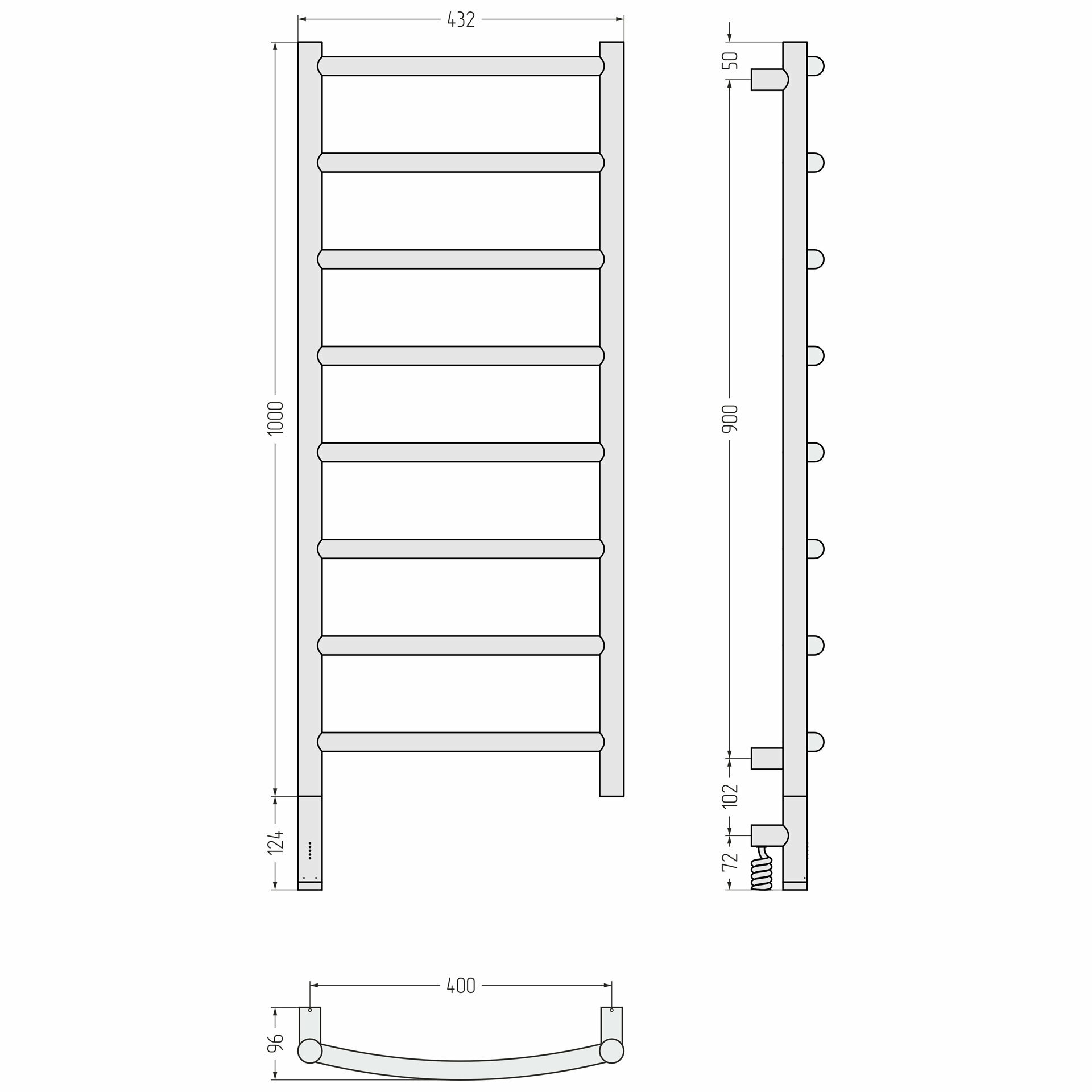 Полотенцесушитель электрический Сунержа Галант 3.1 1000х400 МЭМ правый Без покрытия