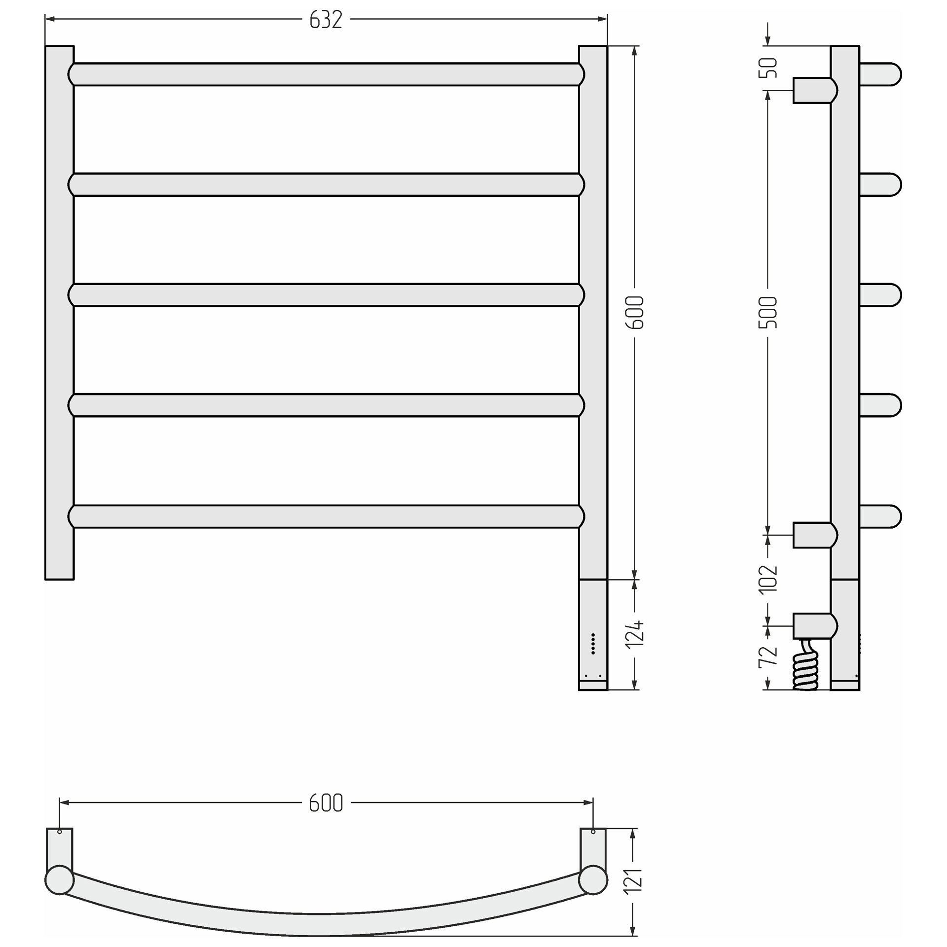Полотенцесушитель электрический Сунержа Галант 3.1 600х500 МЭМ левый Без покрытия
