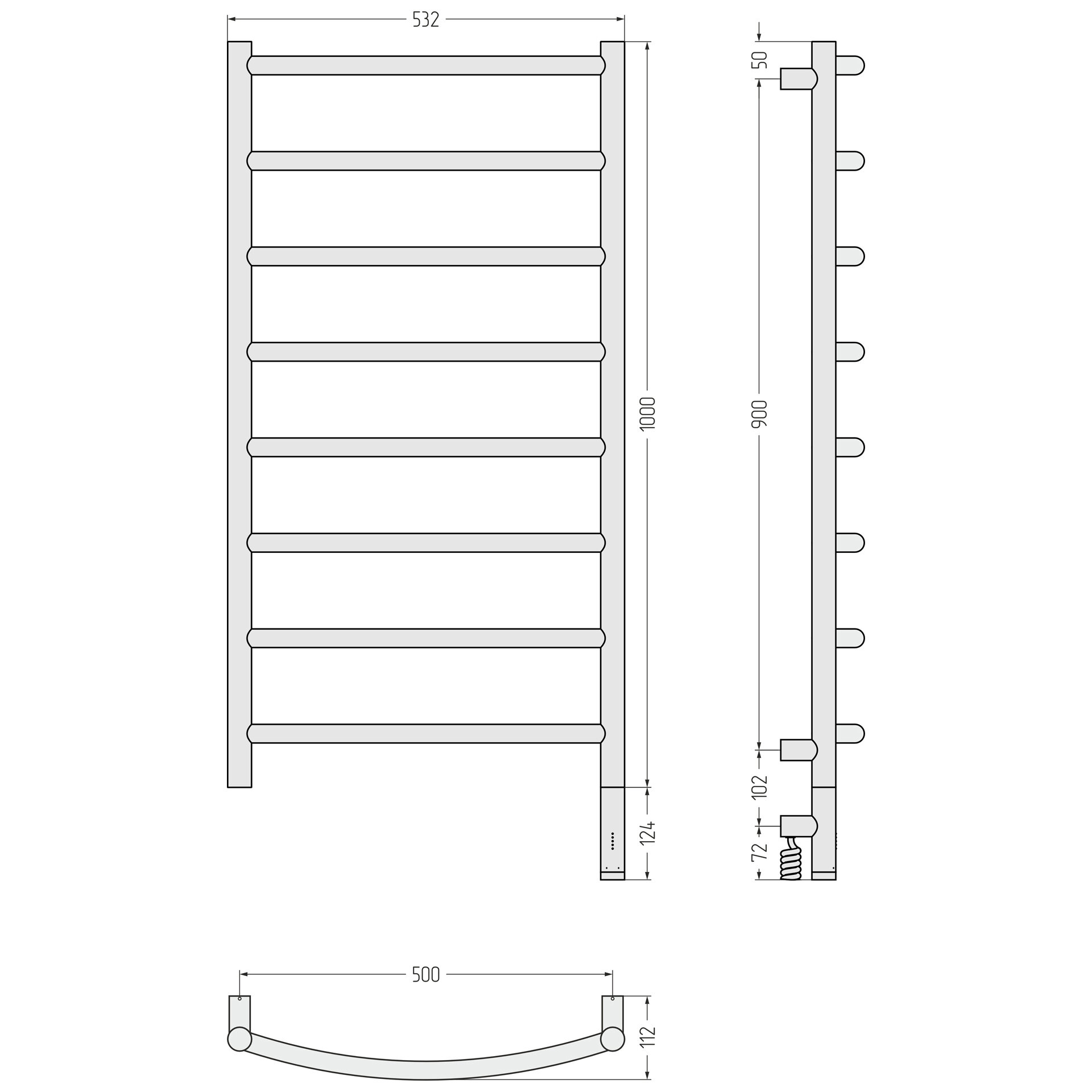 Полотенцесушитель электрический Сунержа Галант 3.1 600х500 МЭМ правый Без покрытия
