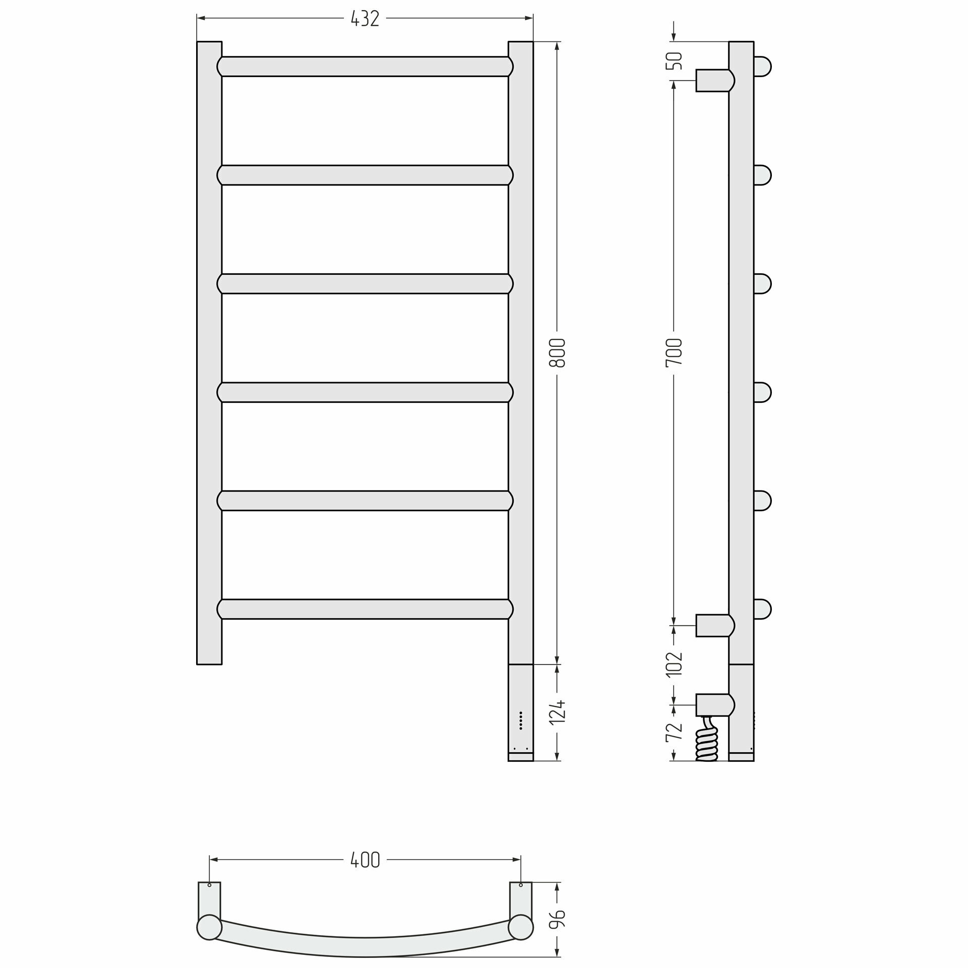 Полотенцесушитель Электрический Тругор Пэк сп 5 П 60х50 черный ВГП