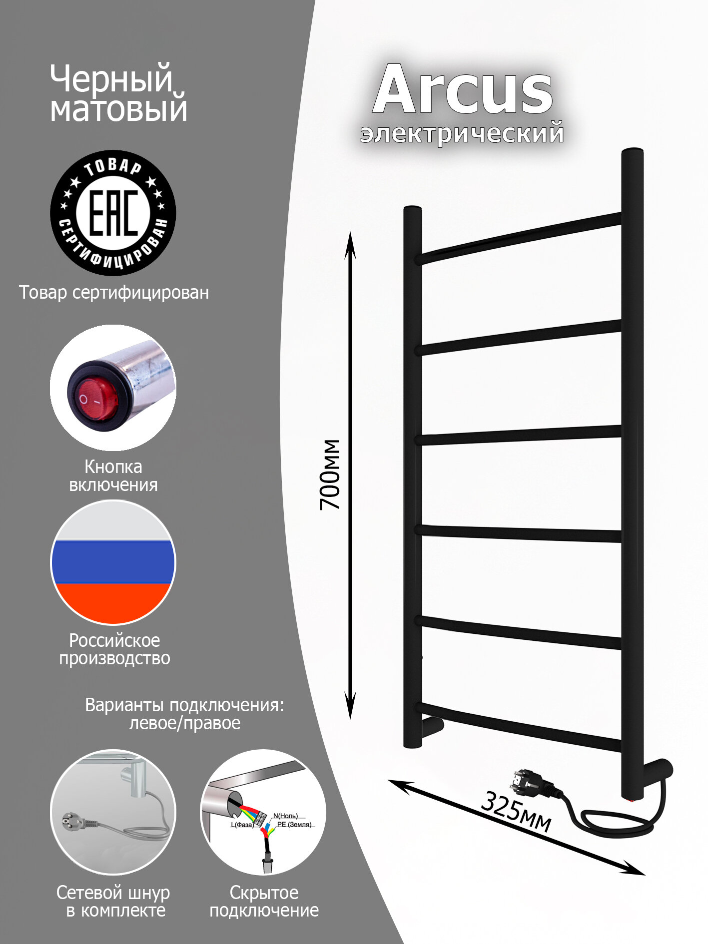 Купить Черный полотенцесушитель электрический arcus 70 нержавеющая сталь