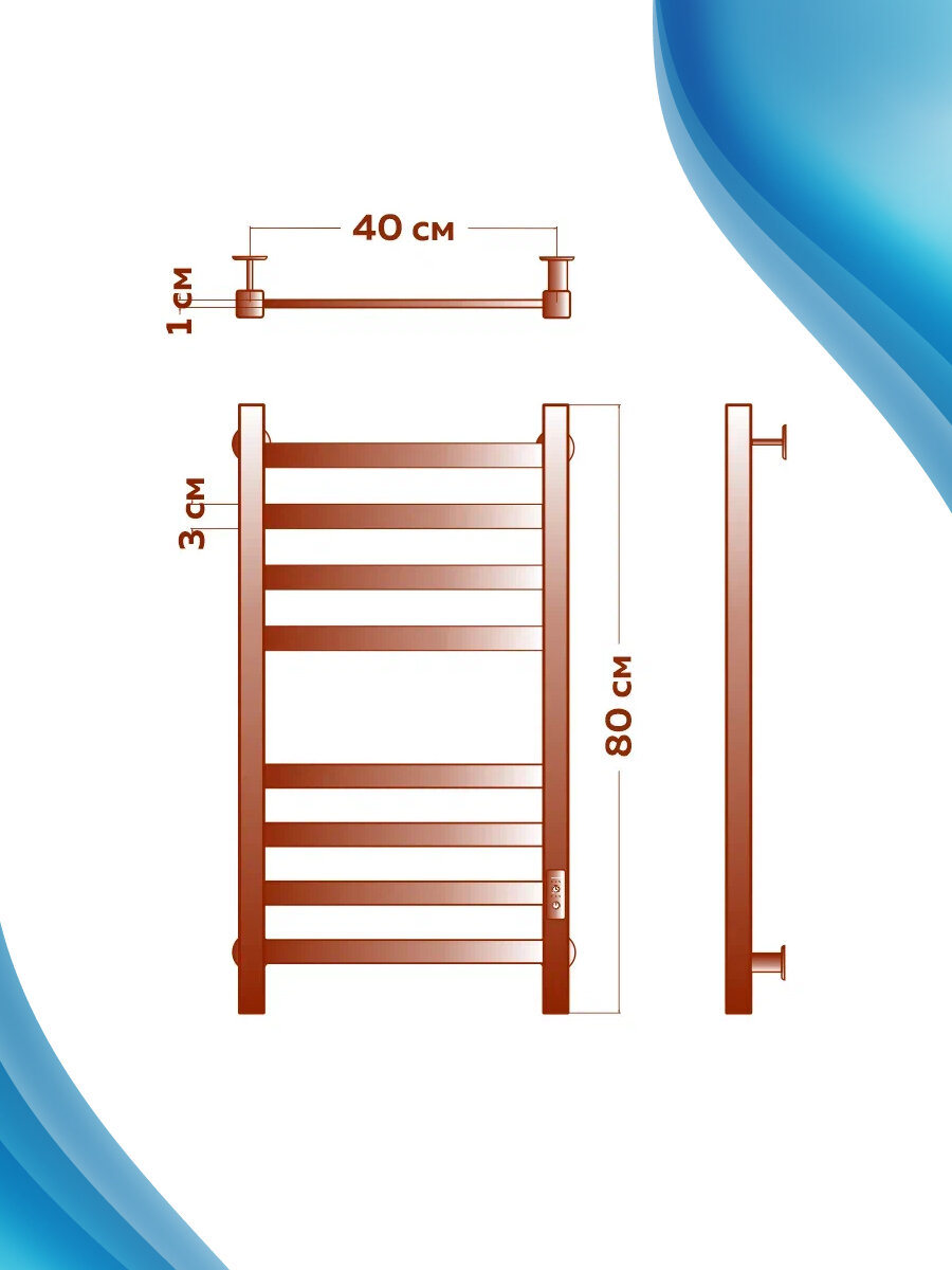 Полотенцесушитель электрический Aquanerzh Прямой групповая с полкой 100x40 лтэн