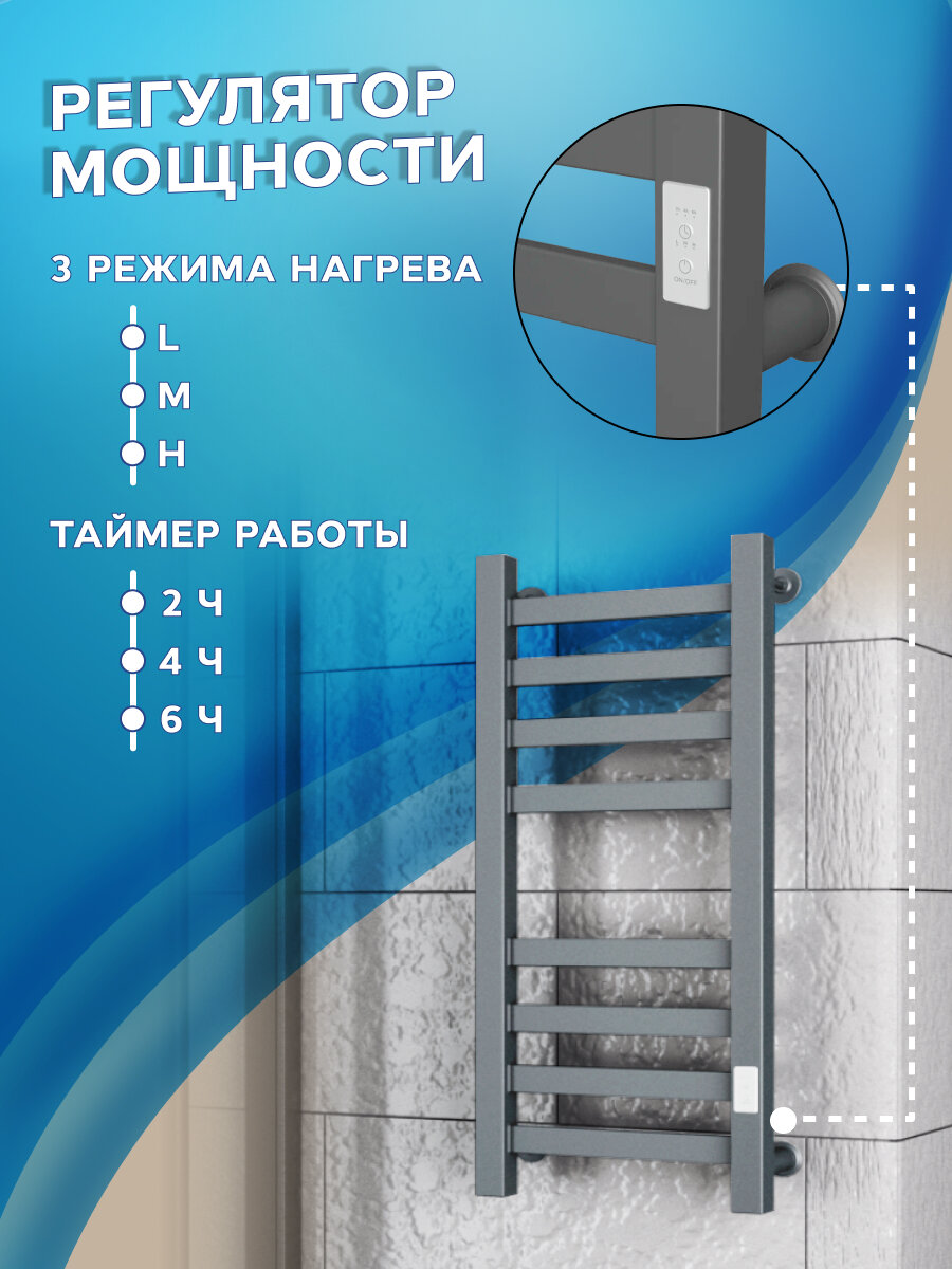 Полотенцесушитель электрический профильный BAU В81/10 Gun Grey 50х80, темно-серый металлик с таймером, универсальное подключение