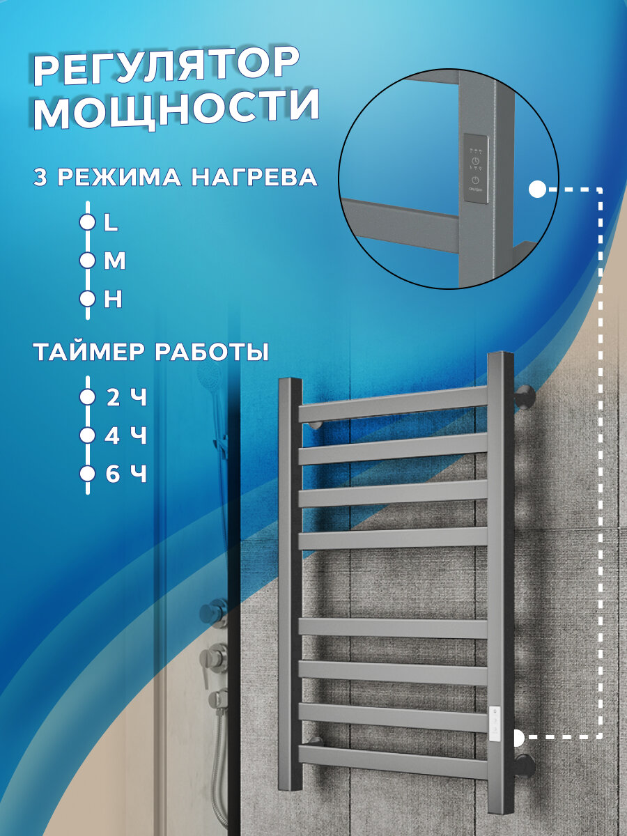 СохранитьПолотенцесушитель электрический профильный BAU В81/10 Gun Grey 50х80, темно-серый металлик с таймером, универсальное подключение интересное: