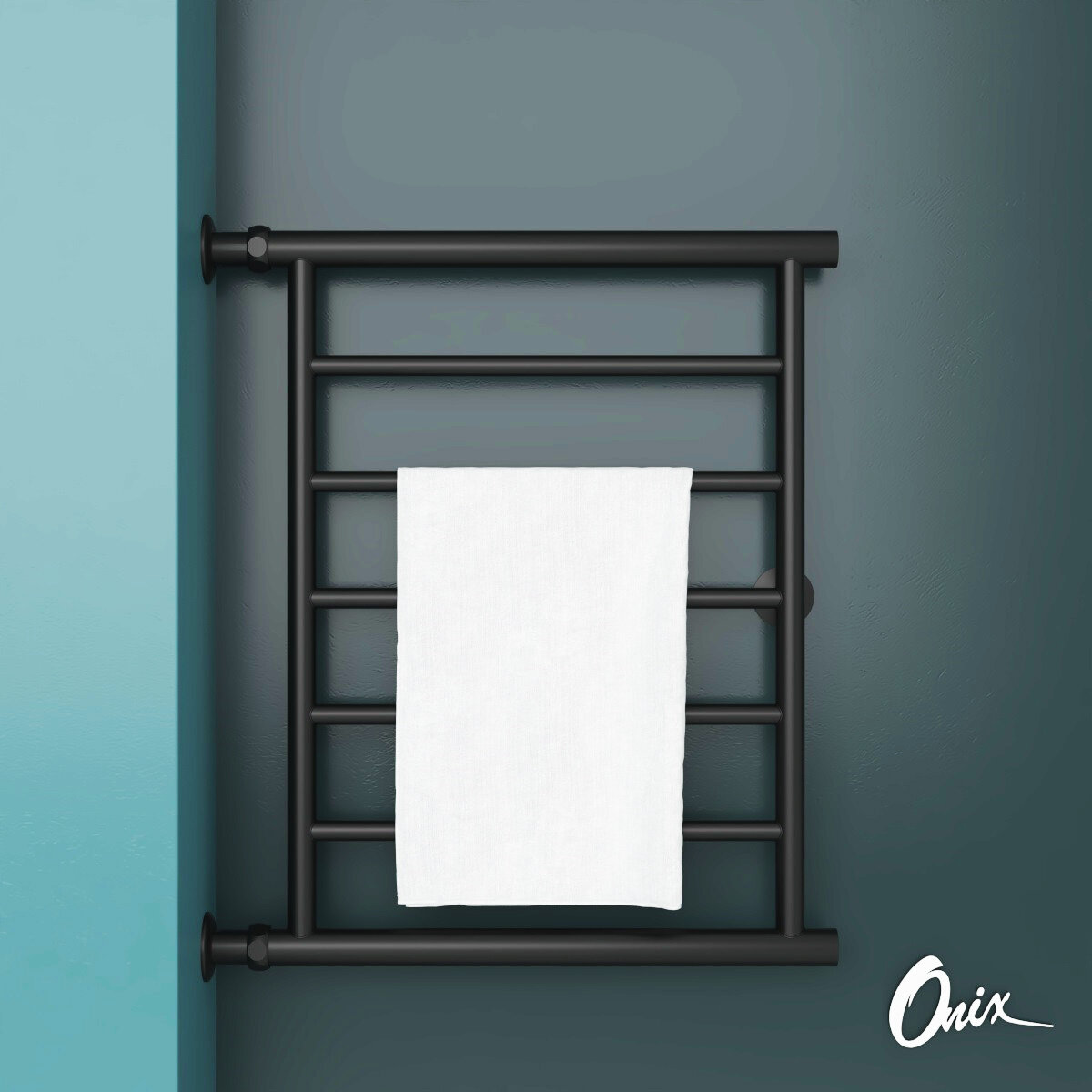 Полотенцесушитель Водяной Onix, модель Sirius Direct Black Left 600x600 Лесенка с боковым прямым подключением слева, Черный матовый, полный комплект