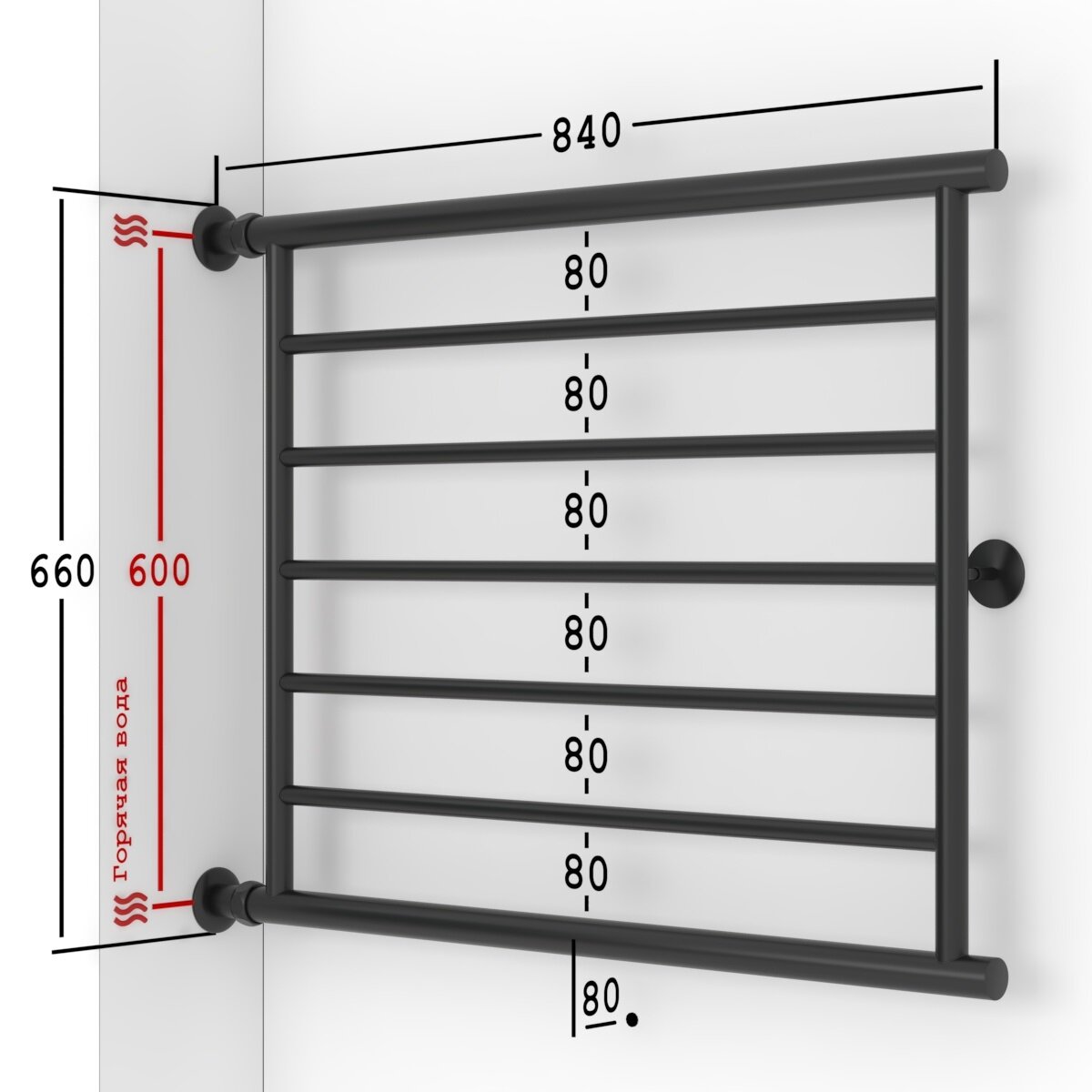 Полотенцесушитель Водяной Onix, модель Sirius Direct Black Right 600x800 Лесенка с боковым прямым подключением справа, Черный матовый, полный комплект