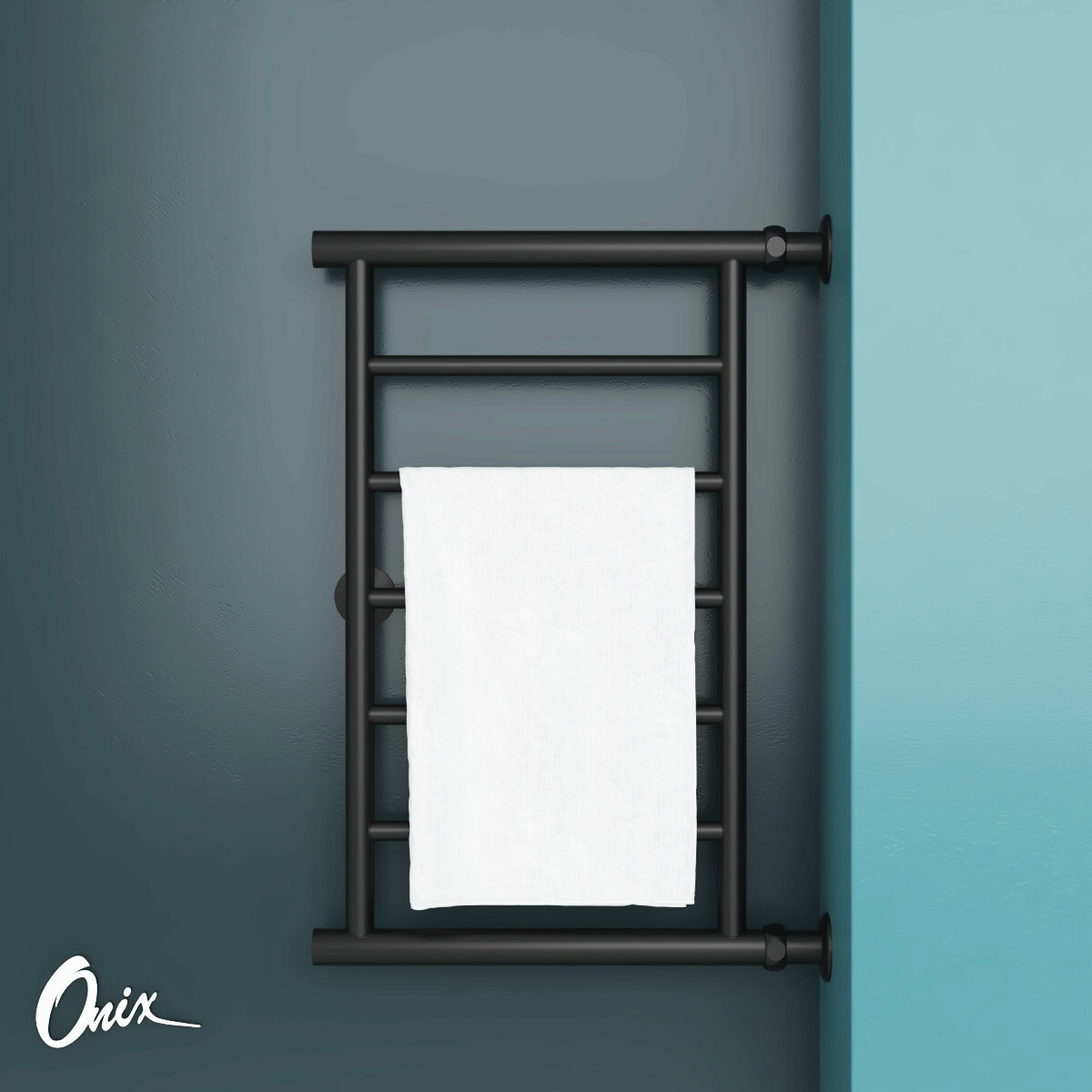 Полотенцесушитель Водяной Onix, модель Sirius Direct Black Left 600x500 Лесенка с боковым прямым подключением слева, Черный матовый, полный комплект
