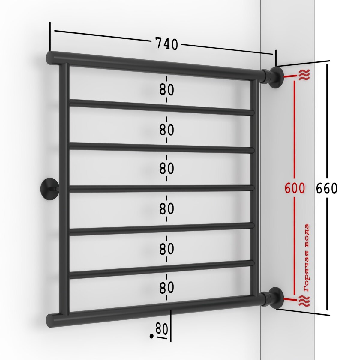Полотенцесушитель Водяной Onix, модель Sirius Direct Black Right 600x800 Лесенка с боковым прямым подключением справа, Черный матовый, полный комплект