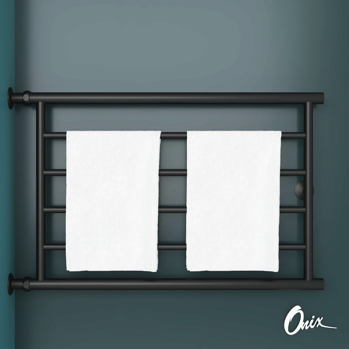 Полотенцесушитель Водяной Onix, модель Sirius Direct Black Right 600x600 Лесенка с боковым прямым подключением справа, Черный матовый, полный комплект