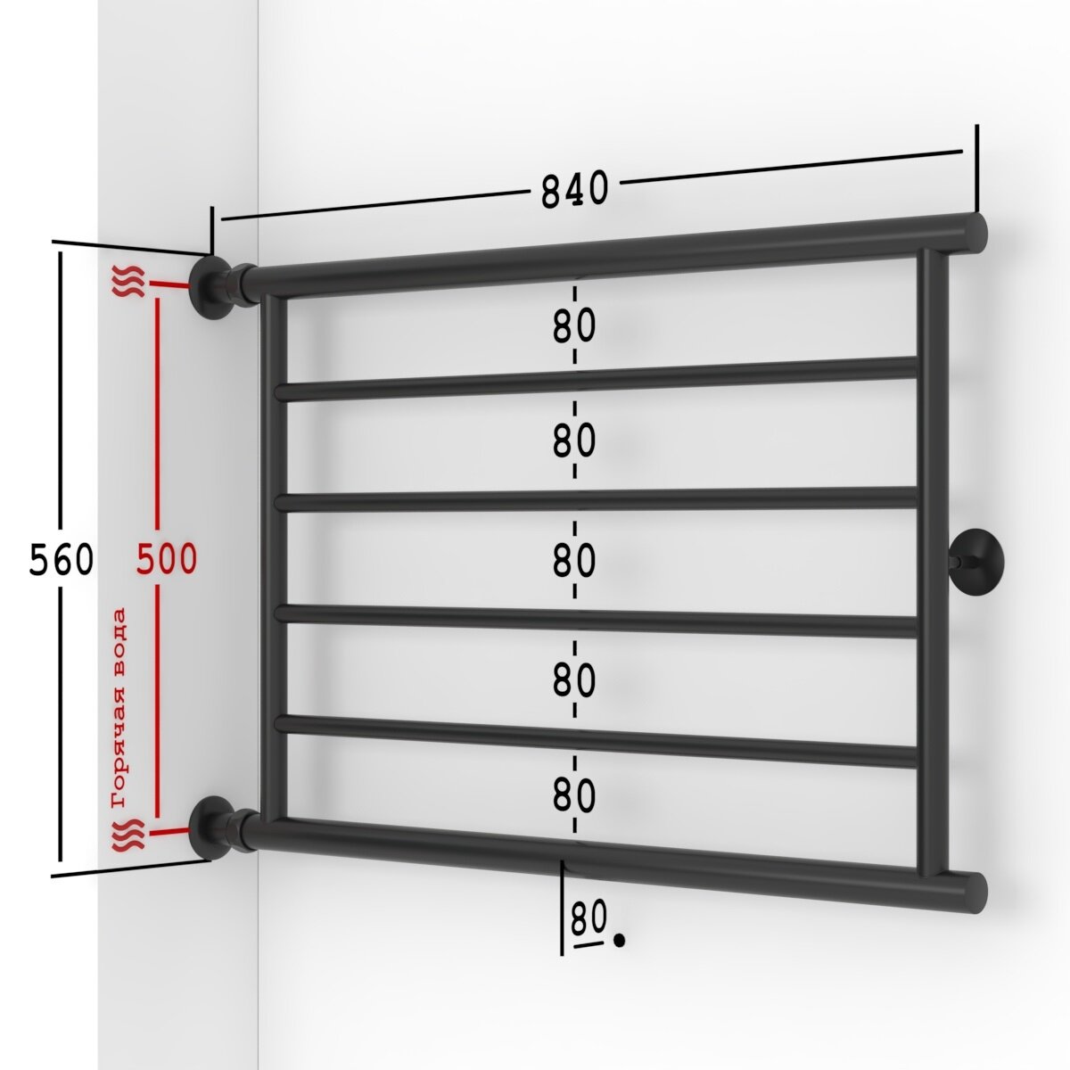 Полотенцесушитель Водяной Onix, модель Sirius Direct Black Left 600x600 Лесенка с боковым прямым подключением слева, Черный матовый, полный комплект