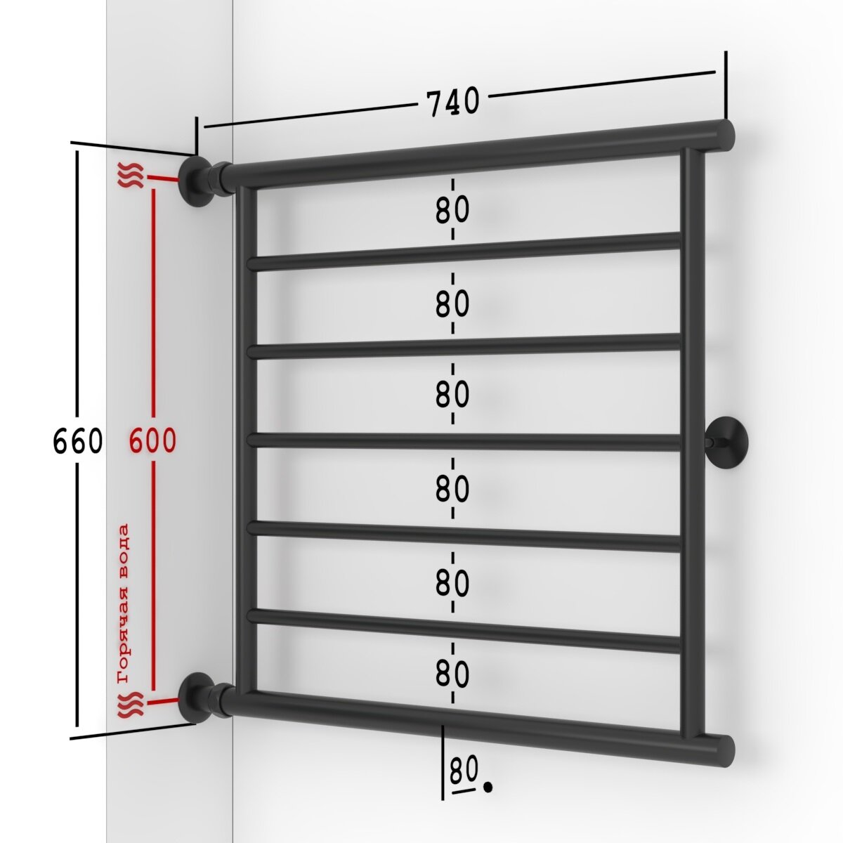 Полотенцесушитель Водяной Onix, модель Sirius Direct Black Right 600x800 Лесенка с боковым прямым подключением справа, Черный матовый, полный комплект