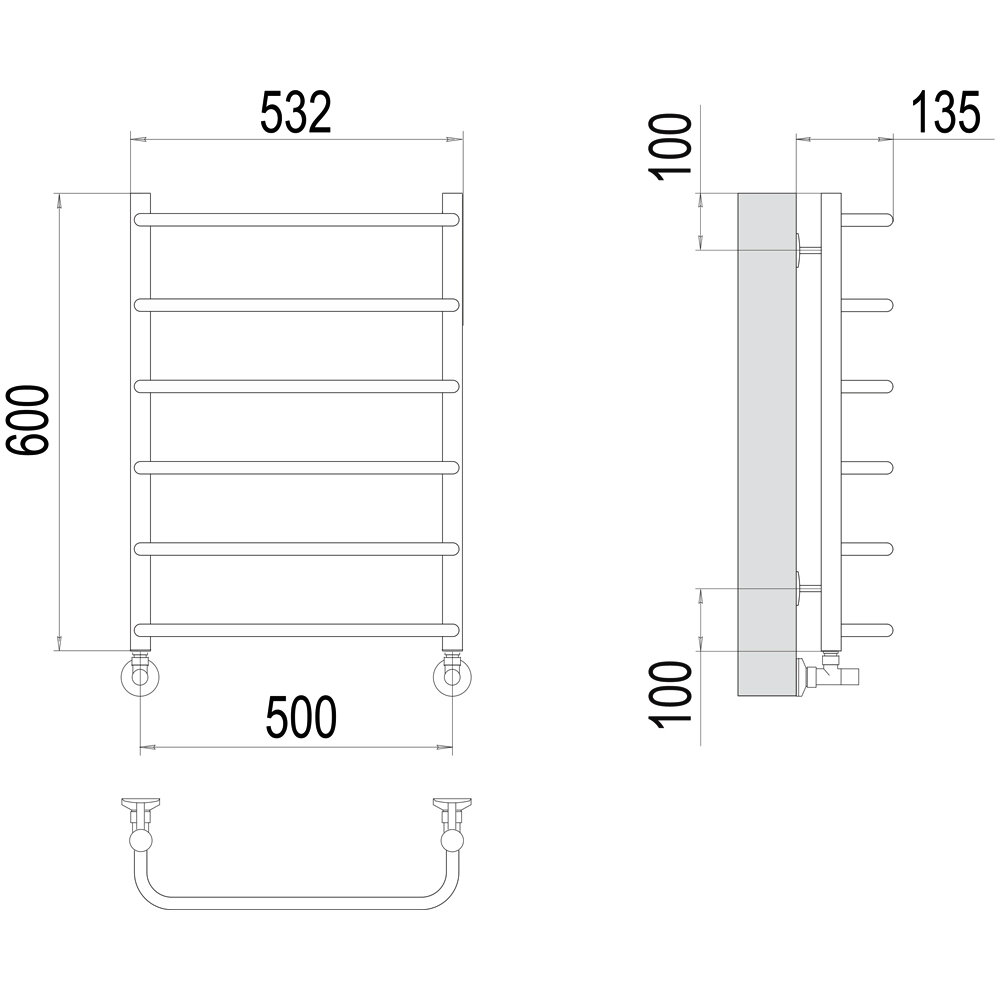 Полотенцесушитель водяной Terminus Виктория П6 500x600 с боковым подключением 500