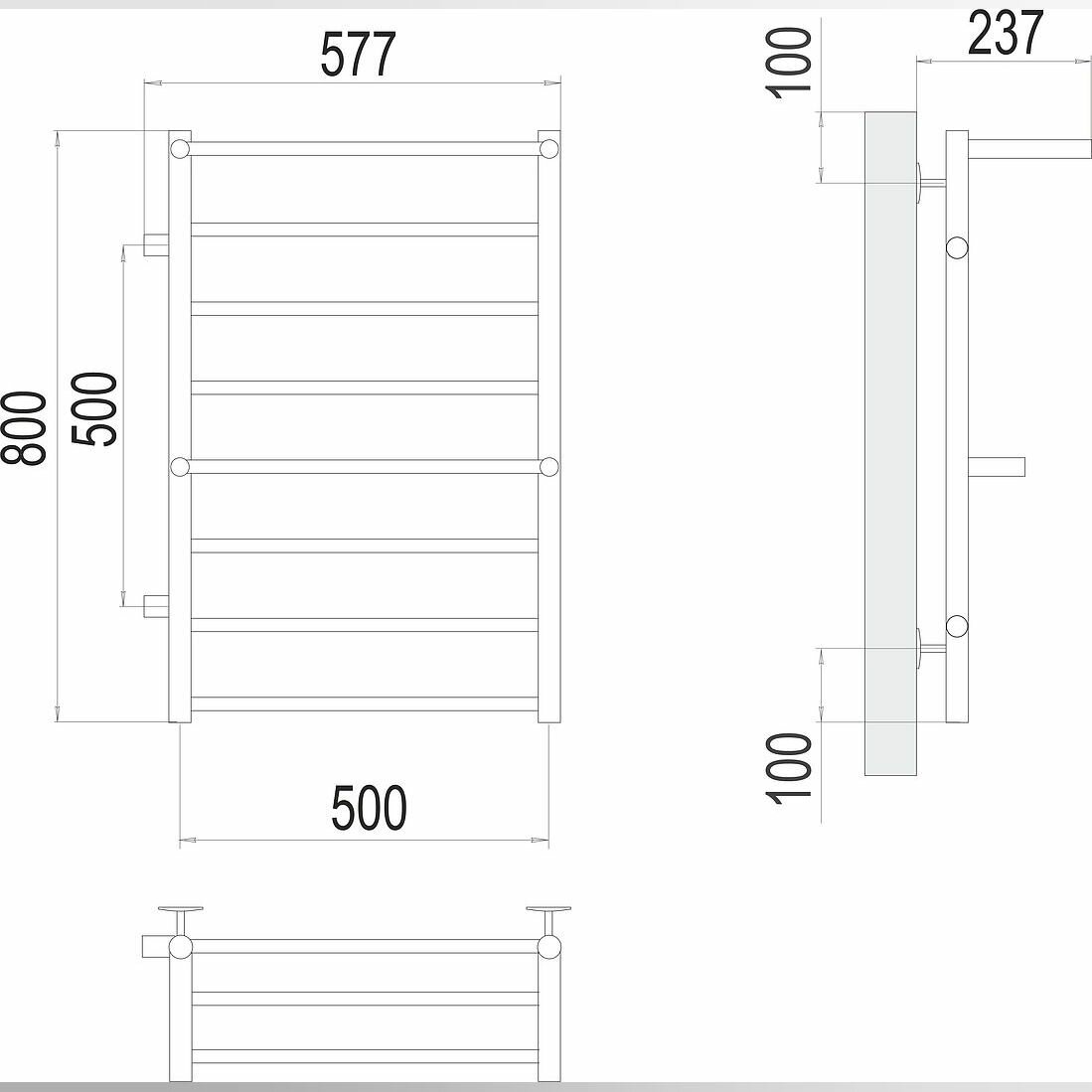 Купить Полотенцесушитель водяной Terminus Анкона П8 500х800 бп500 слева