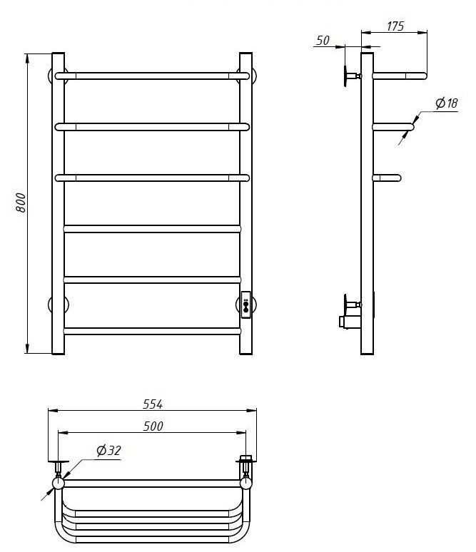 Полотенцесушитель электрический WORK-Паритет 80x50 в ванную с терморегулятором, 5 перекладин, универсальное подключение