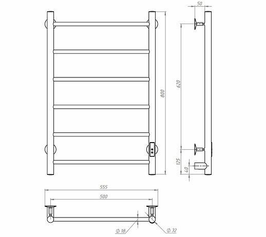 Полотенцесушитель Электрический Тругор Пэк сп 5 П 60х50 черный ВГП
