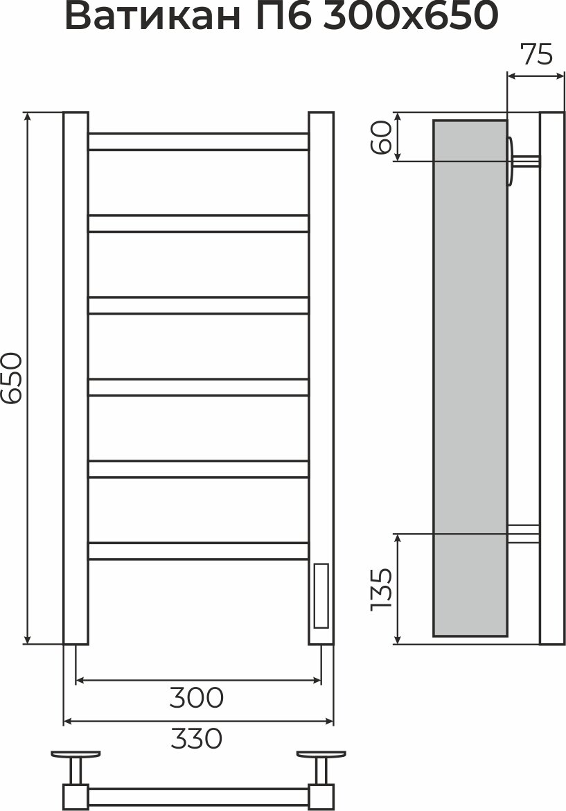 Полотенцесушитель электрический TERMINUS (Терминус) Ватикан П6 300х650 мм, нержавеющая сталь, гарантия 5 лет. интересное:
