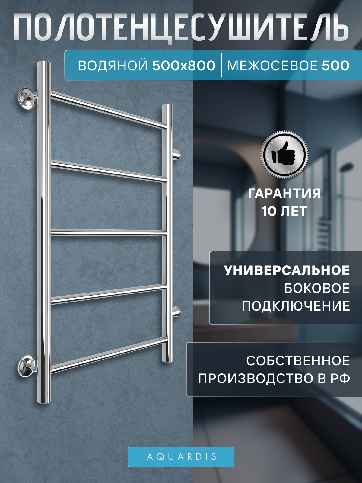 Купить Полотенцесушитель водяной Aquardis лесенка 500х800 боковое подключение хром нержавеющая сталь