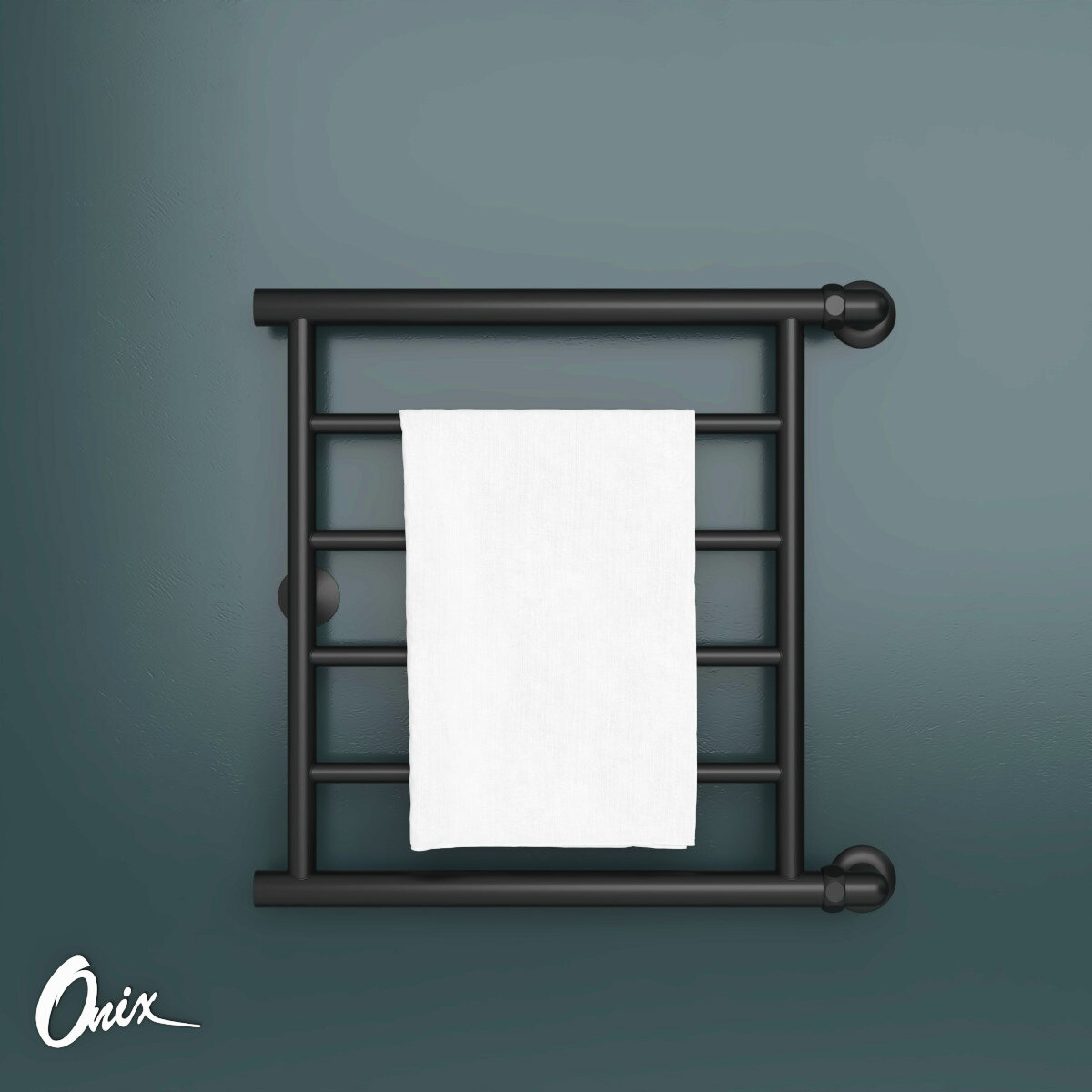 Полотенцесушитель Водяной Onix, модель Sirius Turn Black Right 600x600 Лесенка с боковым угловым подключением справа, Черный матовый, полный комплект
