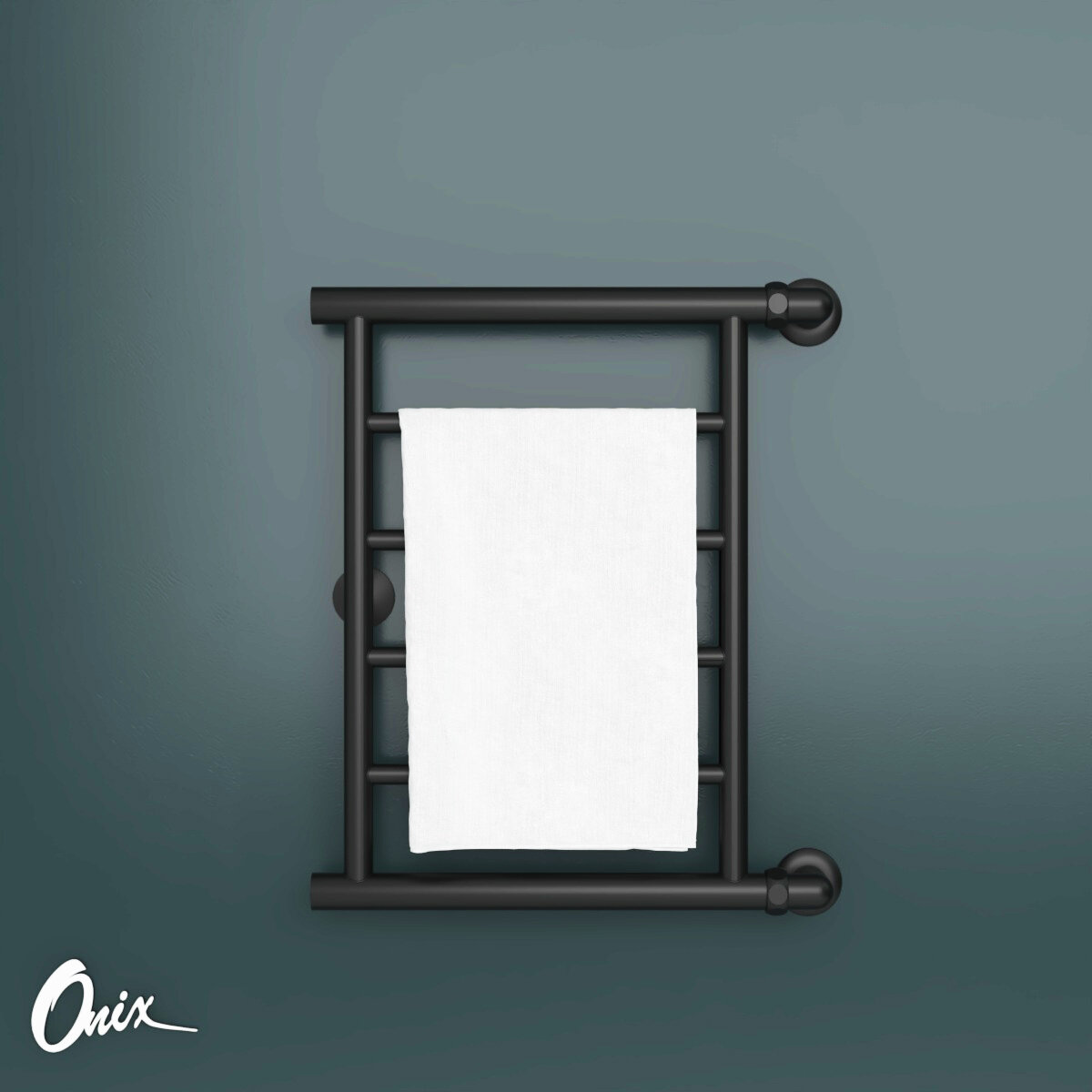 Полотенцесушитель Водяной Onix, модель Sirius Turn Black Left 600x400 Лесенка с боковым угловым подключением слева, Черный матовый, полный комплект