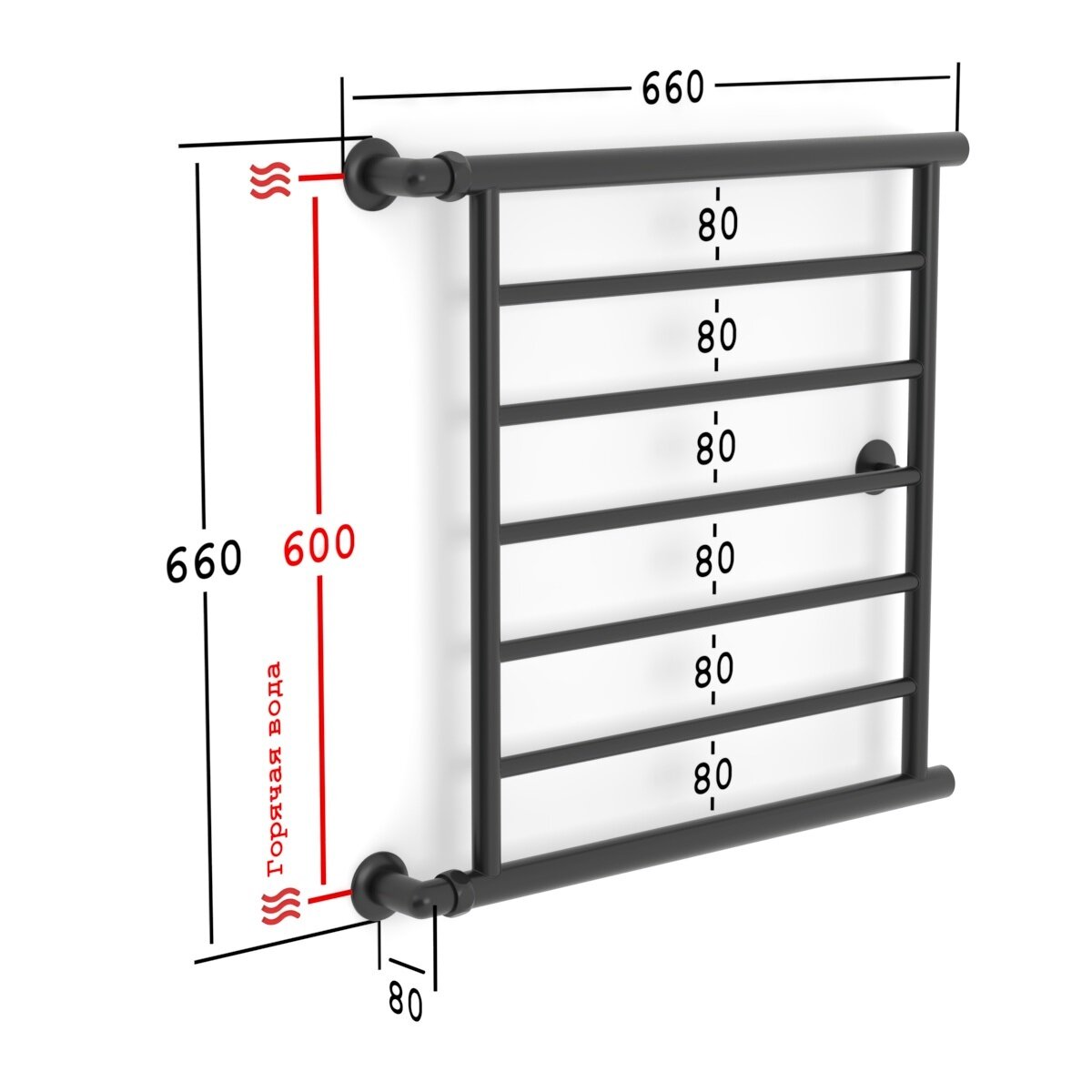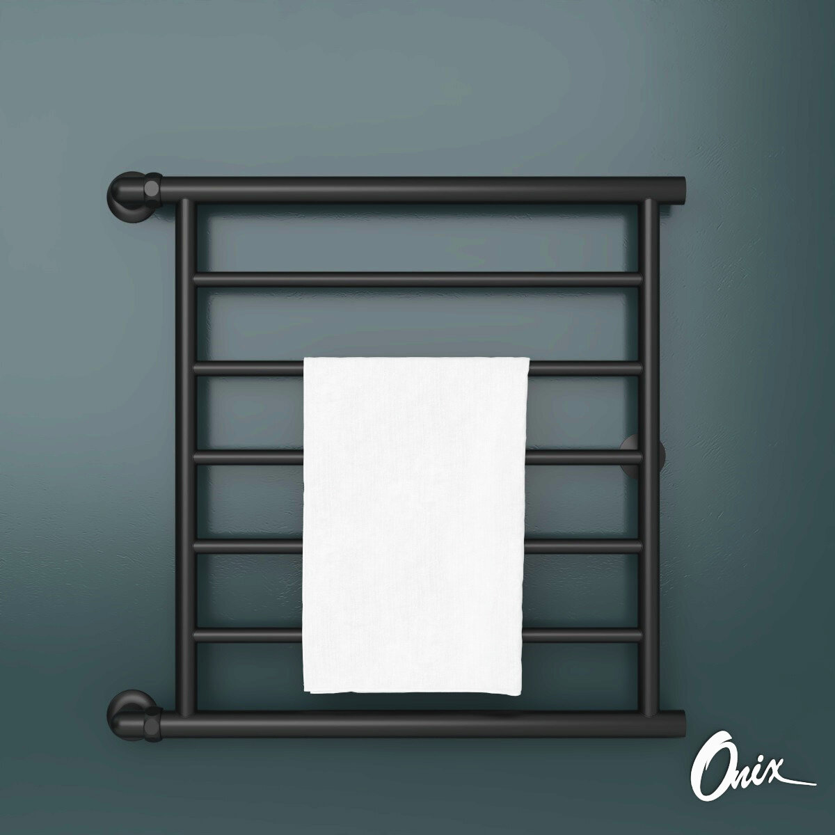 Полотенцесушитель Водяной Onix, модель Sirius Turn Black Right 600x600 Лесенка с боковым угловым подключением справа, Черный матовый, полный комплект