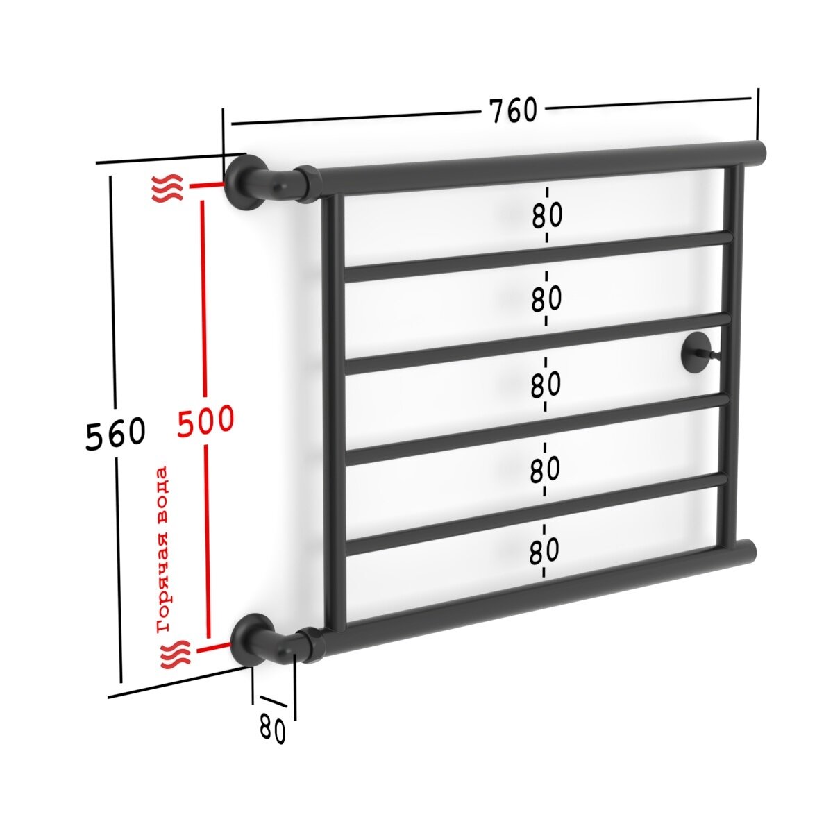 Полотенцесушитель Водяной Onix, модель Sirius Turn Black Left 600x600 Лесенка с боковым угловым подключением слева, Черный матовый, полный комплект