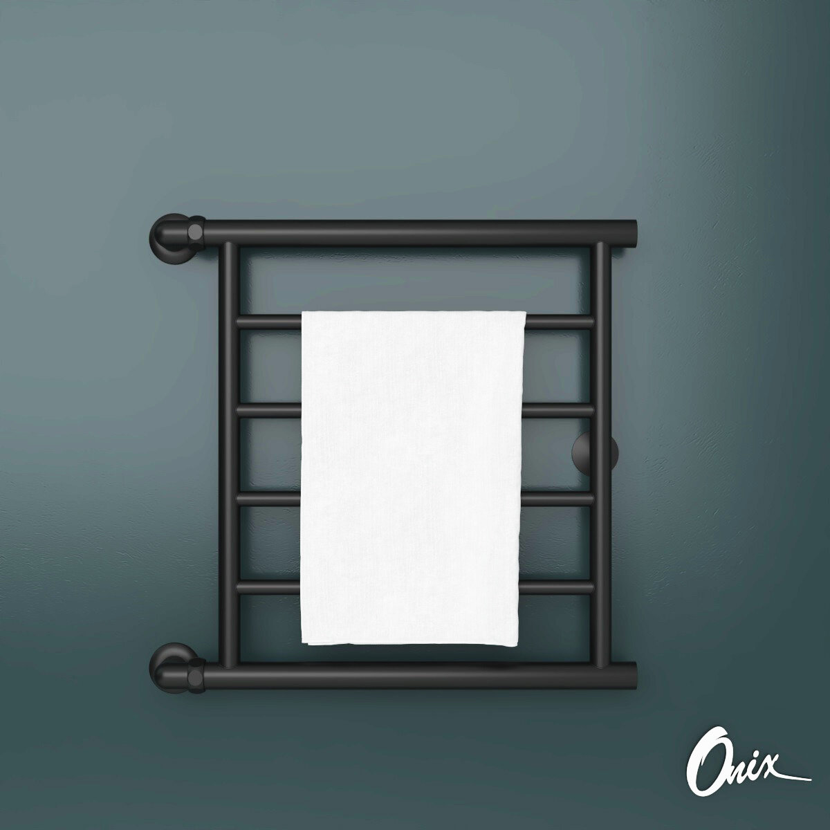 Полотенцесушитель Водяной Onix, модель Sirius Turn Black Right 600x600 Лесенка с боковым угловым подключением справа, Черный матовый, полный комплект