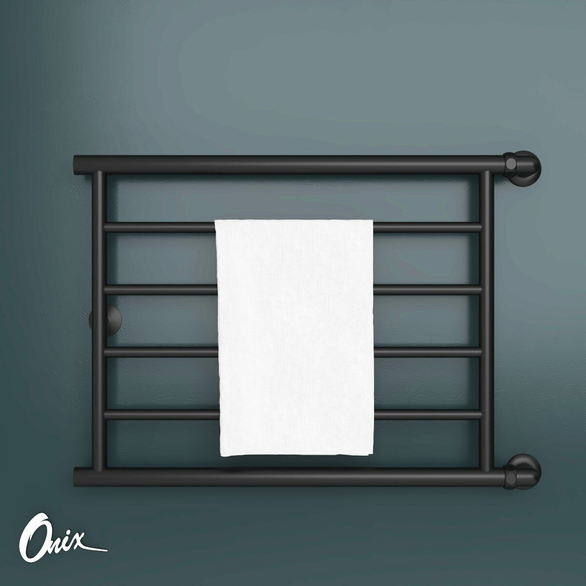 Полотенцесушитель Водяной Onix, модель Sirius Turn Black Right 600x600 Лесенка с боковым угловым подключением справа, Черный матовый, полный комплект