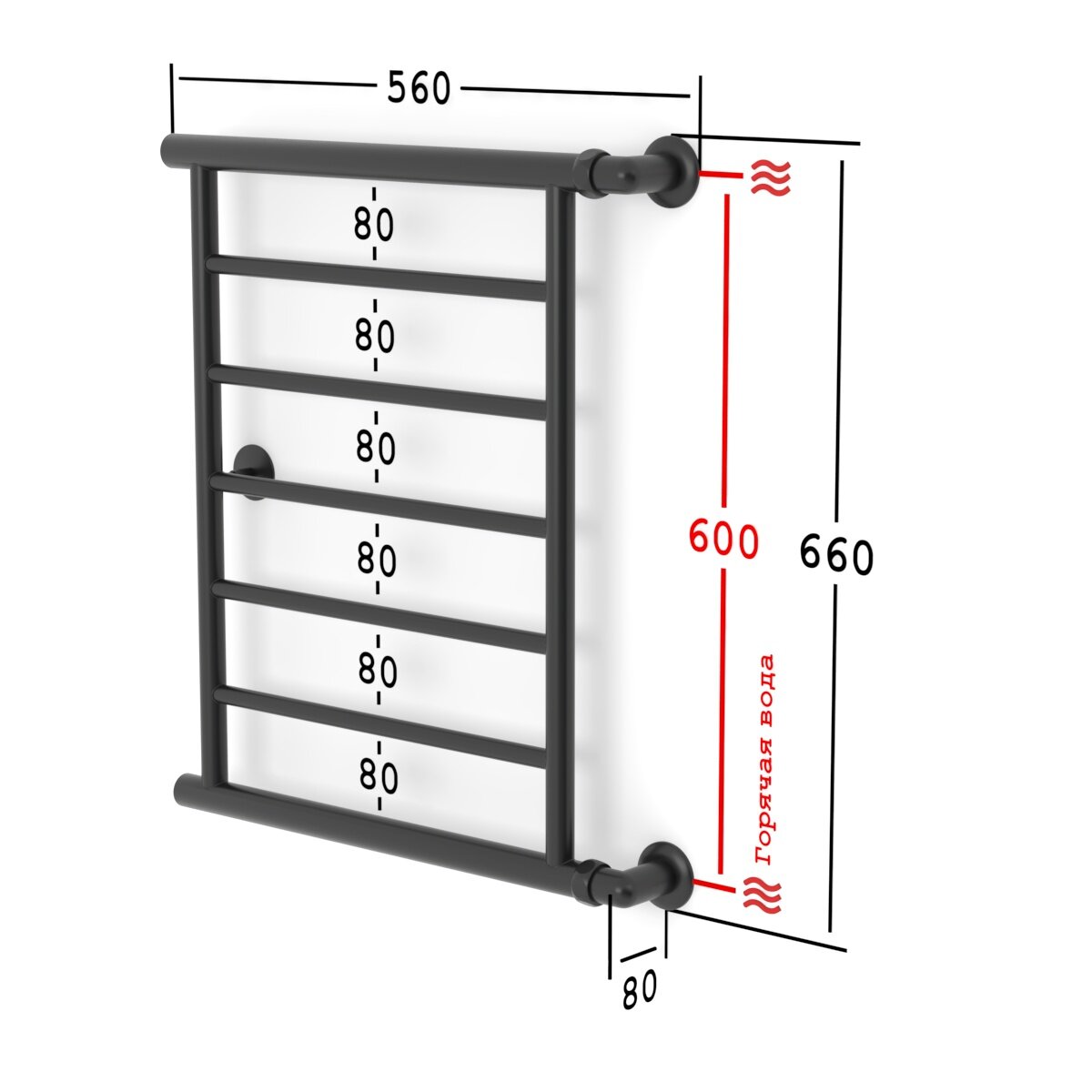 Полотенцесушитель Водяной Onix, модель Sirius Turn Black Left 600x800 Лесенка с боковым угловым подключением слева, Черный матовый, полный комплект
